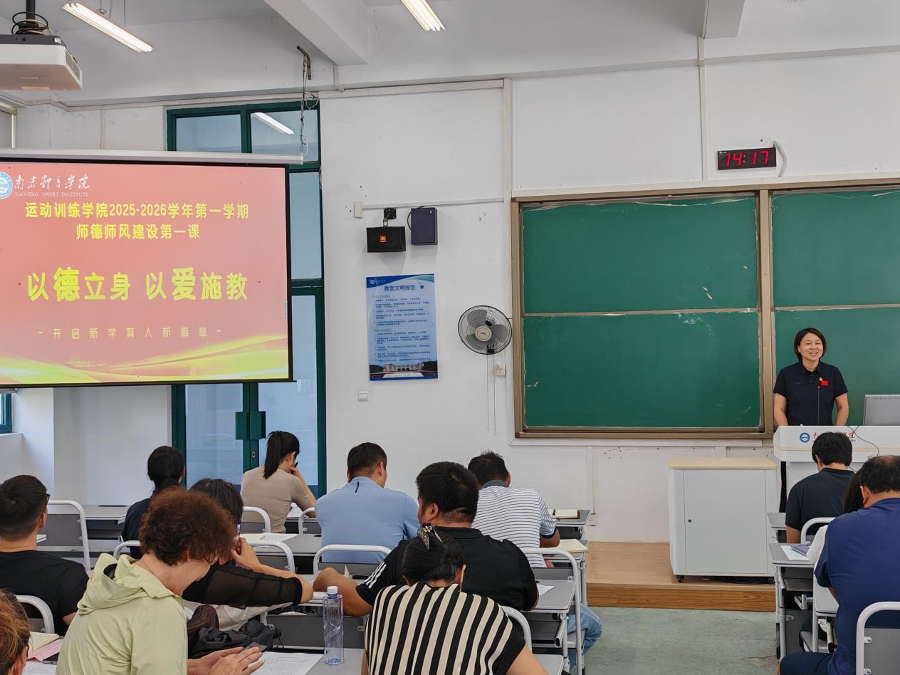 2025年9月5日,运动训练学院全体教师大会暨师德师风建设专题会议在仙林教学楼C301召开。会议总结暑期工作、部署新学期任务,尤其聚焦师德师风建设,为新学期育人工作定向领航。