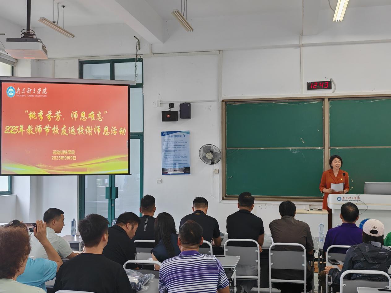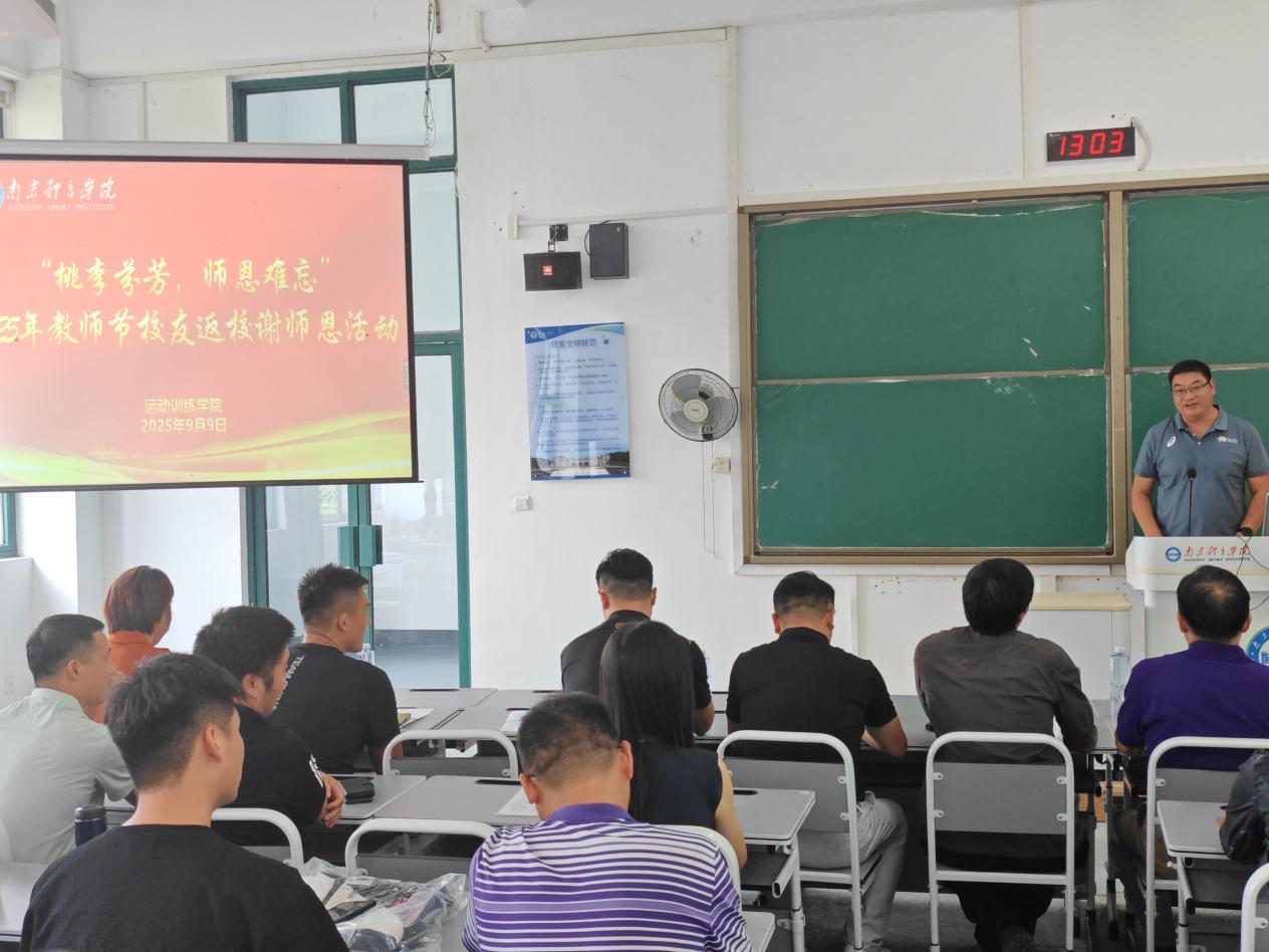 在第 41 个教师节来临之际,为弘扬尊师重教传统、传递对教师的敬意,9月9日,运动训练学院“桃李芬芳,师恩难忘”校友返校谢师恩活动在仙林教学楼 C301 举行。学院全体教师、关工委成员、校友代表,共同参与,现场暖意融融。