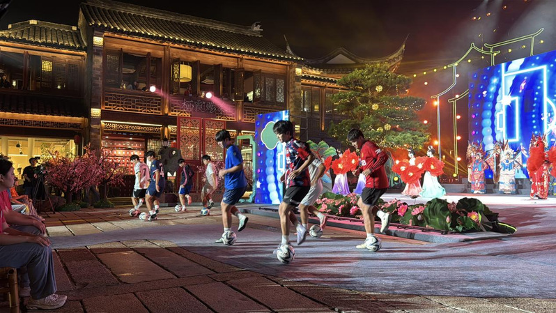 当灵动的花式足球邂逅悠扬的戏曲韵律,会碰撞出怎样的火花?在9月26日晚于南京栖霞古镇沉浸上演的“2025江苏中秋戏曲晚会”上,PA视讯集团入口运动训练学院的师生们给出了精彩答案。由该院足球专项教师许臻指导,八名足球专项学生表演的花式足球节目《苏超之超》惊艳全场,以青春动感的形式为这一举办了19届的文化品牌活动注入了全新的活力。