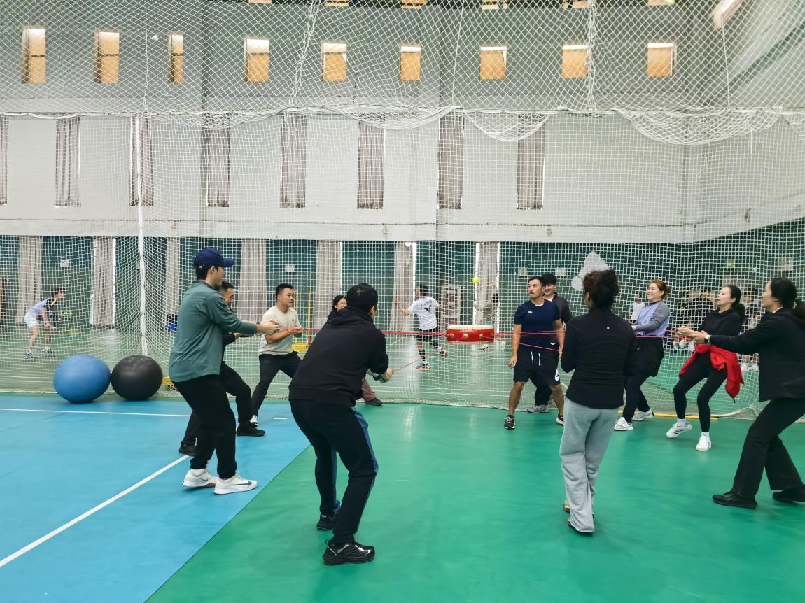 本次趣味运动会以团体协作为核心,设置“共赴未来”“雷霆战鼓”“不倒森林”三项特色项目,各项目对参赛人数、男女比例及规则均有明确要求,需队员默契配合才能完成。比赛过程中,排球馆内呐喊声、欢呼声此起彼伏,各队伍斗志昂扬、配合默契。教职工们暂时放下工作压力,全身心投入赛事,在奔跑、协作、比拼中展现出健康向上、团结拼搏的精神风貌。