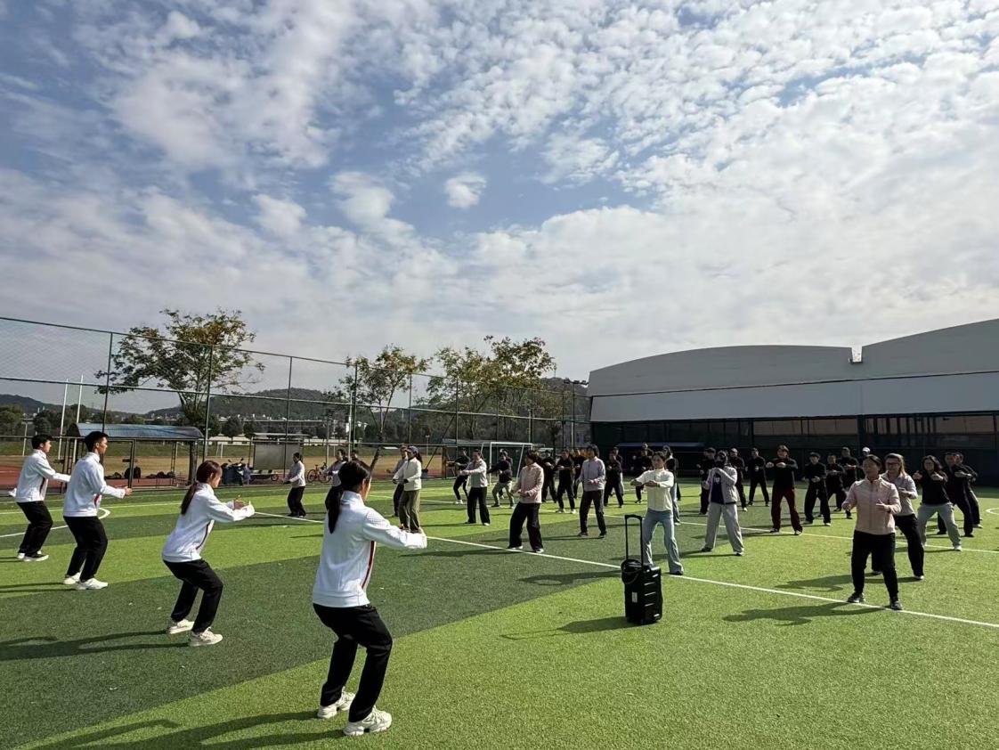 为践行体育育人初心,传承传统健身文化精髓,11月4日下午,运动训练学院分工会在仙林校区足球场组织开展“健身气功·八段锦”学练活动,全院教职工踊跃参与,感受中国传统健身功法的魅力,活动现场氛围热烈。