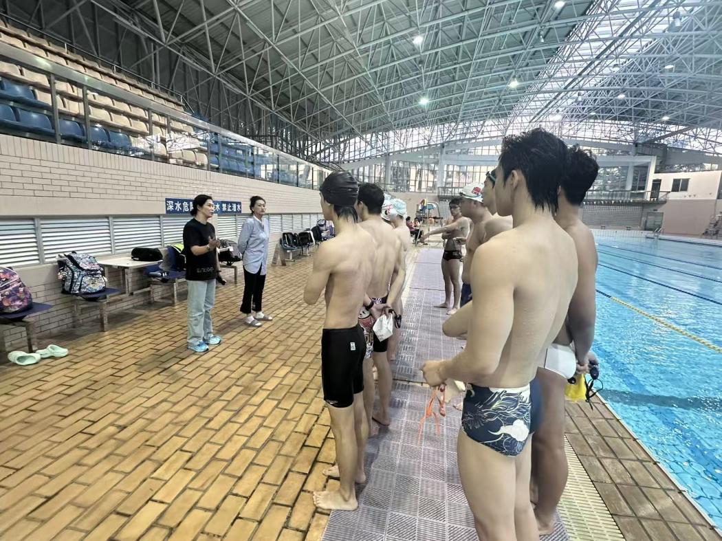 图二 陆青老师与华侨大学游泳专项课学生交流