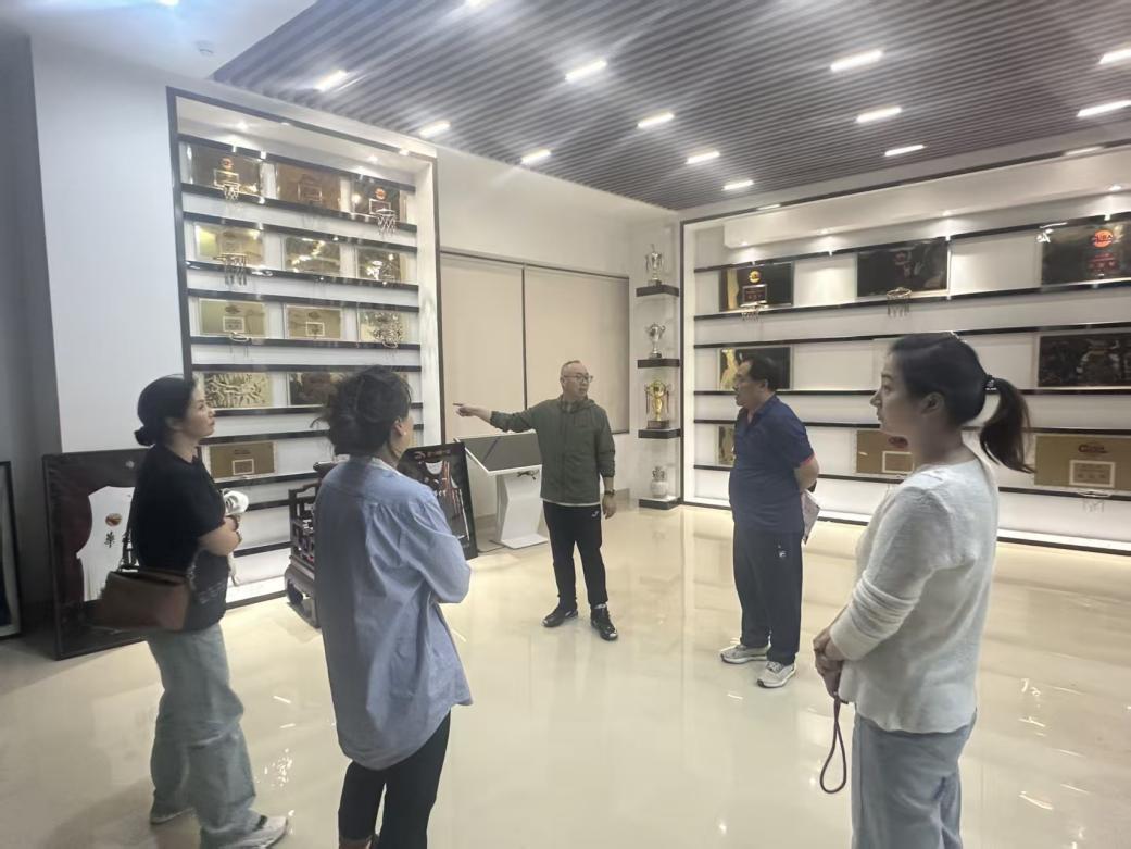 图七 胡国鹏教授介绍体育学院陈列室