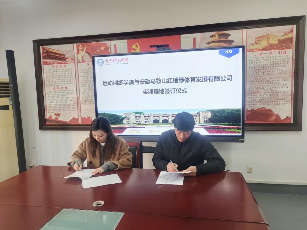 2025年11月18日下午,运动训练学院与安徽马鞍山红橙绿体育发展有限公司在仙林校区教学楼B305隆重举行实训基地合作签约仪式。双方共同签署了为期三年的实训基地合作协议,标志着校企合作迈入实质性阶段。