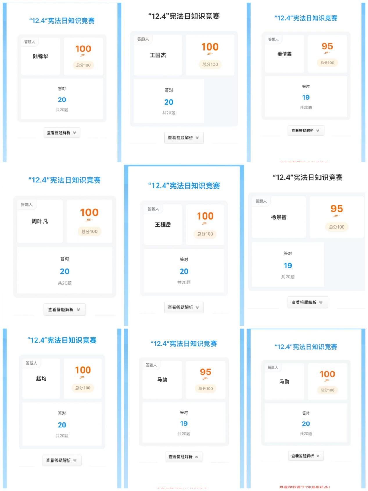为深入学习贯彻落实习近平法治思想,弘扬宪法精神、维护宪法权威,在12月4日第十二个国家宪法日到来之际,运动训练学院分工会开展2025年国家宪法日线上知识答题活动,学院教师积极参与,掀起了尊法学法守法用法的热潮。
