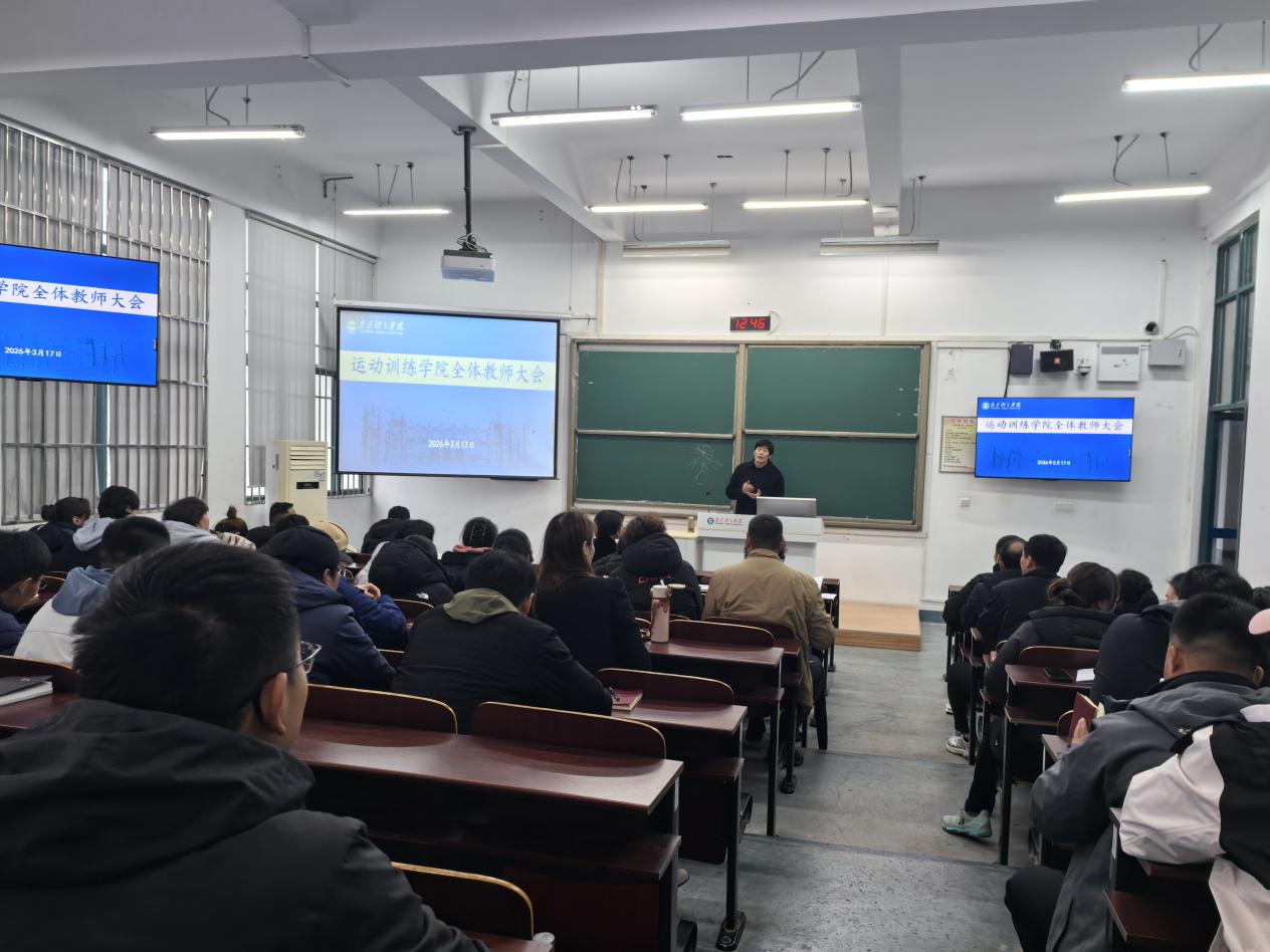 3月17日下午,运动训练学院召开全体教师大会统筹部署近期各项重点工作,明确工作方向、压实工作责任。会议由学院院长赵琦主持,学院全体教师参会。