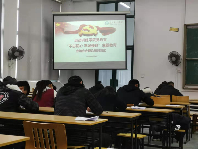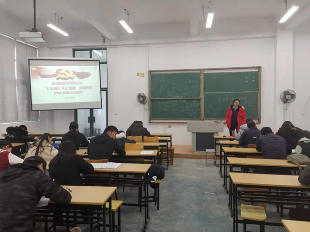 为深入开展“不忘初心、牢记使命”主题教育,推动学院党总支全体党员政治学习的自觉性,根据《运动训练学院党总支“不忘初心、牢记使命”主题教育实施方案》工作安排,11月21日中午,学院党总支组织全体党员进行主题教育应知应会理论知识测试。