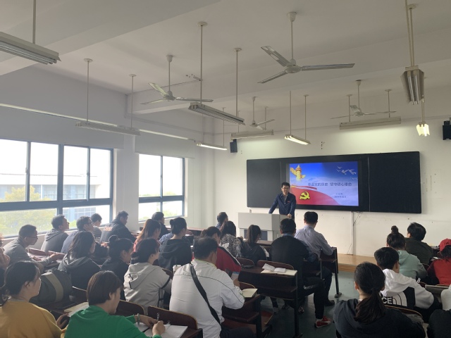 兰亚明副书记的讲课紧扣“不忘初心、牢记使命”主题教育,从三湾改编把支部建在连上,联系到高校基层党建把支部建在教研室;从建党初期共产党员对信念、理想的追求联系当前开展“不忘初心、牢记使命”主题教育的必要性;一张张图片、一个个故事生动展现了中国共产党98年的奋斗史,我们党领导人民进行艰苦卓绝的斗争历程、我们党的光荣传统、宝贵经验和伟大成就。