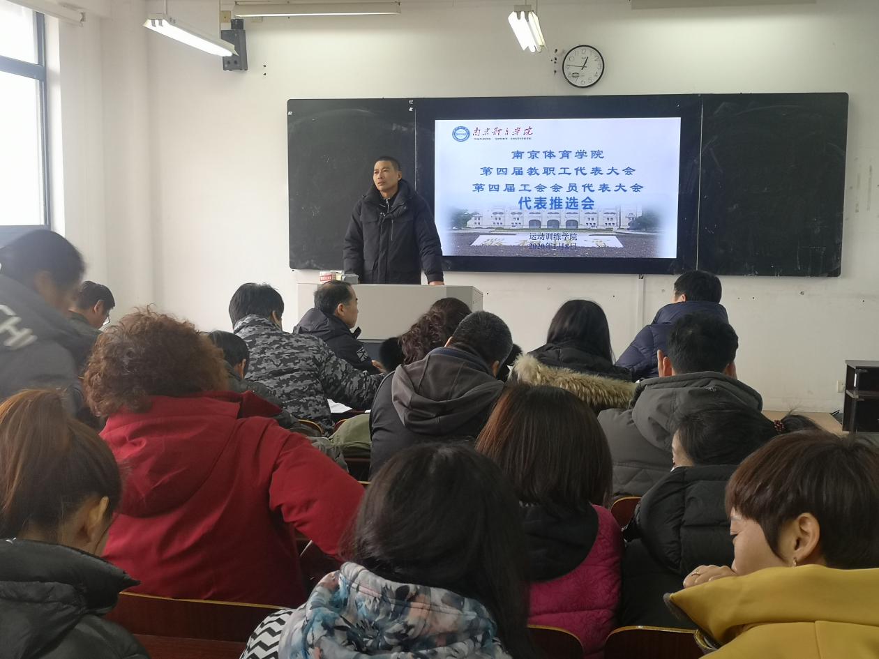 为进一步贯彻落实《关于召开PA视讯集团入口第四届教职工代表大会暨第四届工会会员代表大会的通知》的精神,1月8日中午,运动训练学院在仙林校区教学楼401教室召开了全体教职工大会,选举第四届教代会、工代会代表。会议由运动训练学院党总支副书记杜家俊主持。