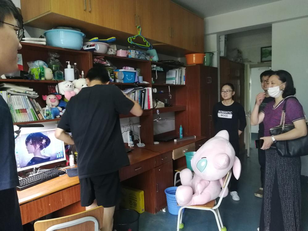 检查组一行首先来到女生宿舍,对已离校学生的宿舍进行了安全检查,喻书记向宿管站仔细询问学生宿舍用电情况,再三叮嘱假期宿舍用电管理安全。对于仍未离校的学生,喻书记和年级辅导员分别亲切交谈,询问具体离校时间,嘱咐离校前关闭宿舍电源,回家路上注意安全。