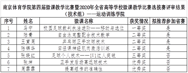 PA视讯集团入口第四届微课教学比赛暨2020年全省高等学校微课教学比赛选拔赛评审结果揭晓,运动训练学院有7名教师参加技术组比赛。其中,马宁老师获得一等奖,陆青、王寅周、陆锦华获得二等奖,张晓红老师获得三等奖,张坤、周霏霏老师获得优秀奖。
