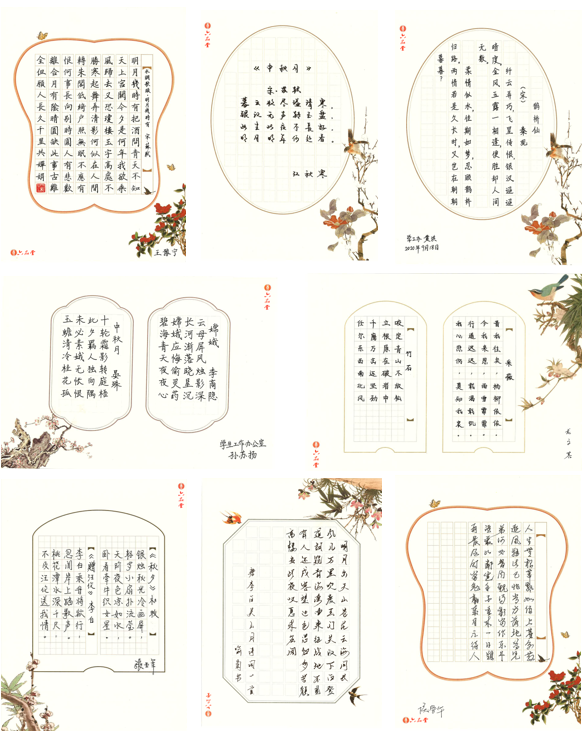 比赛方案公布以后,全体教职工表现出极大的热情,积极参与、认真书写,将传统诗词的经典倾诉笔尖,充分展现了运动训练学院教职工紧跟时代步伐、积极向上、奋发有为的精神风貌。