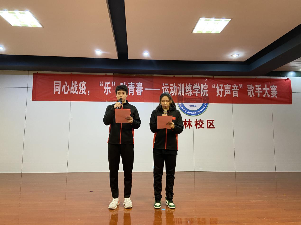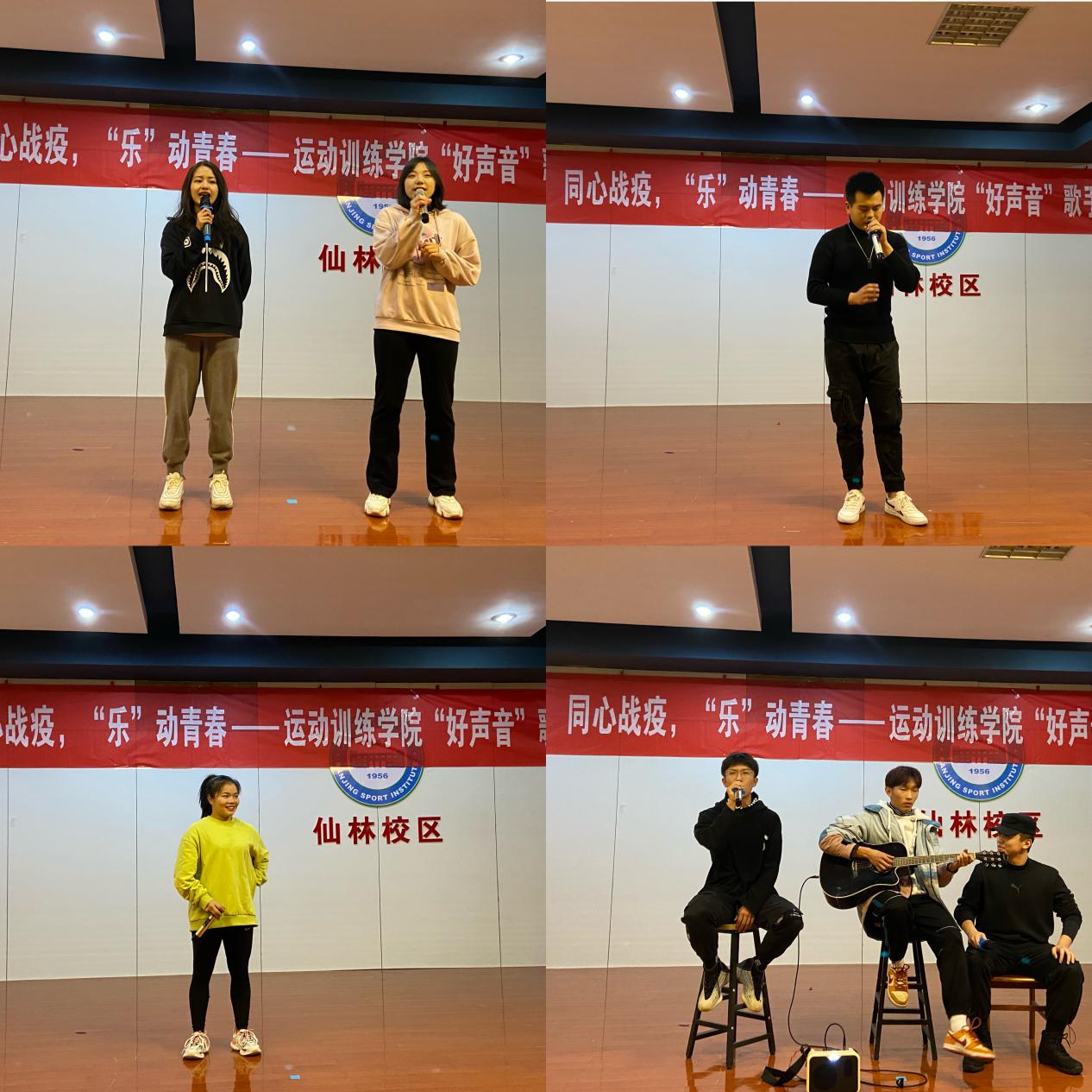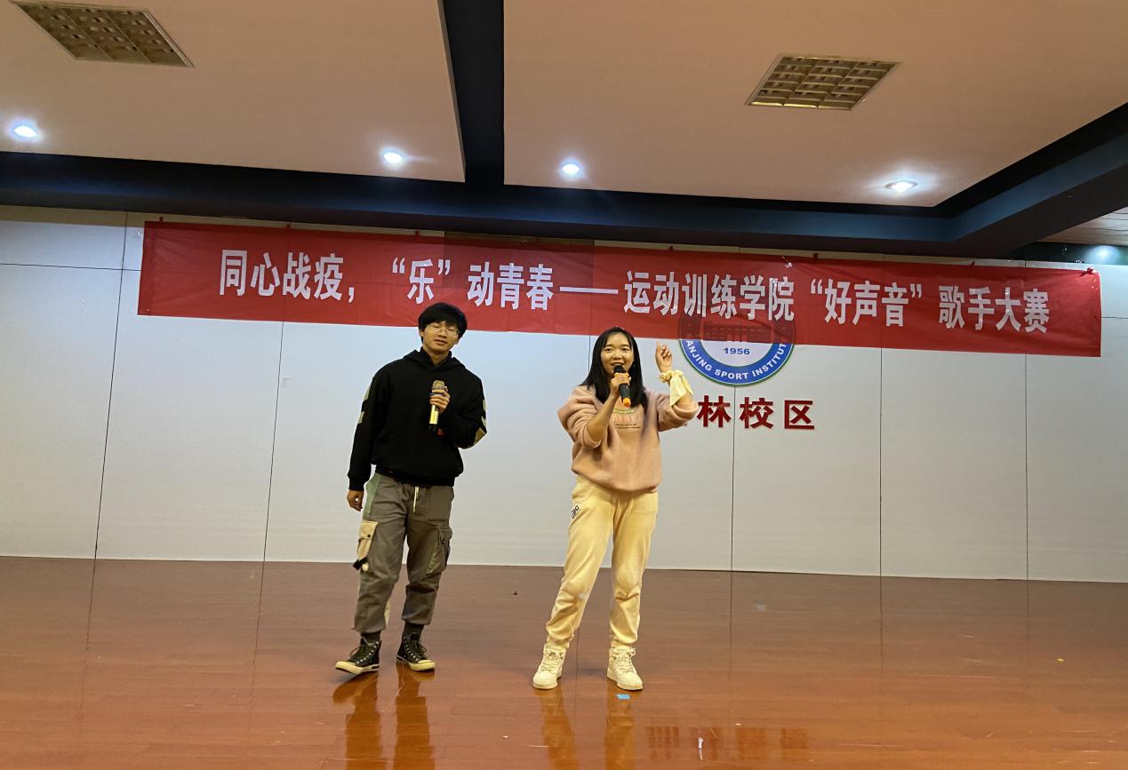 为进一步贯彻落实习总书记在全国抗击新冠肺炎疫情表彰大会上的重要讲话精神,也为丰富疫情期间学生的校园文化生活,营造健康、和谐、美好的校园文化氛围,12月10日下午18:00,在运动训练学院团委指导下,由运动训练学院学生会、运动训练学院社团联合会主办,运动训练学院FD音乐社承办的同心战疫,“乐”动青春——运动训练学院“好声音”歌手大赛在仙林校区大学生活动中心成功举办。活动评委为运动训练学院团委副书记吴海艳,体育产业与休闲学院学生会指导老师、辅导员张樱,体育产业与休闲学院辅导员宋佳,运动训练学院学生会指导老师、辅导员刘宸,运动训练学院辅导员黄洪、运动训练学院FD音乐社社长陈国珍、副社长王思佳。学院学生会全体工作人员、各年级近100名学生也参加了此次活动。活动由2020级钟梦亮、王诺妍同学主持。