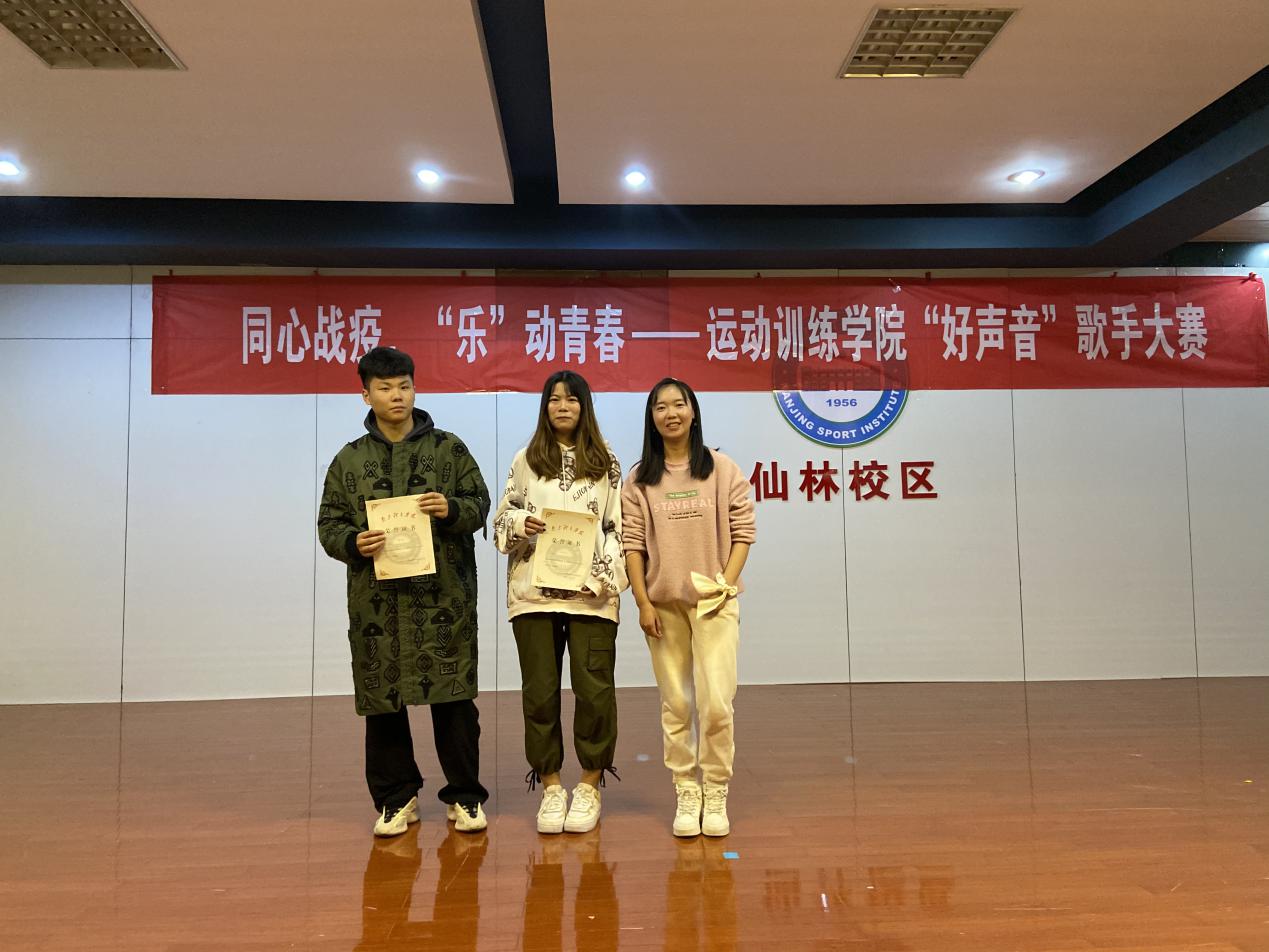经评委打分,最终21844班王子瑜斩获本次“好声音”歌手大赛一等奖,22044班刘颖,22044班陈凡和22046班史雨哲荣获二等奖,三等奖则由22044班张敏萱、郝婧煊,21945班周浩杰,22041班周雨昕,22044班余晓琪,21946班陈郭静、顾玲宁,22042班杨子琪获得,21945班陶梦凡、22044班余沛文分别获得“最佳风采奖”和“最佳人气奖”。