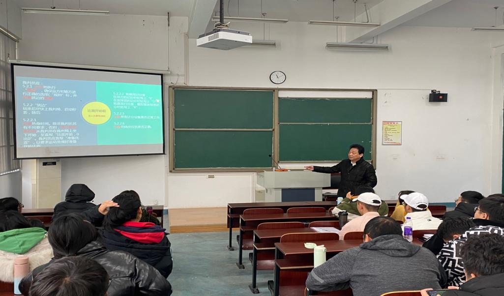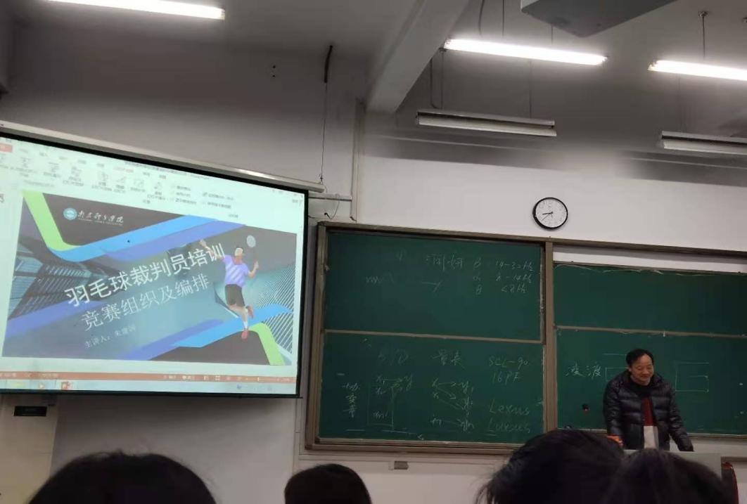 江苏省羽毛球裁判委员会主任薛典魁为学生授课
