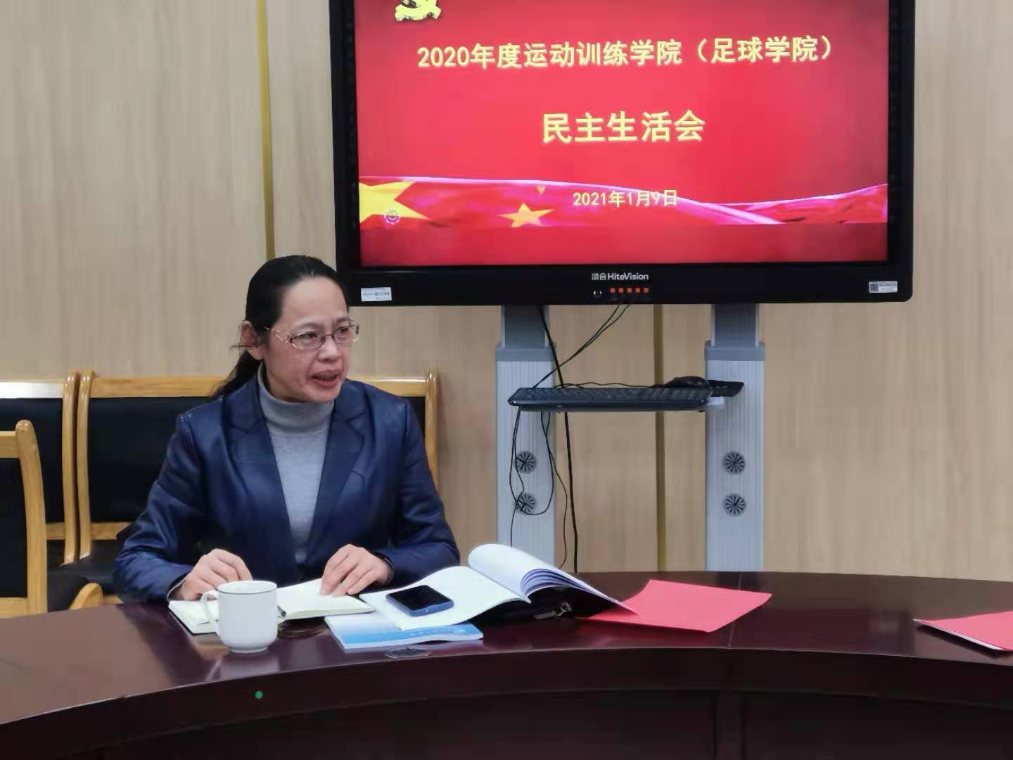 李校长代表学校对学院领导班子民主生活会进行了点评并提出希望。认为运动训练学院(足球学院)领导班子民主生活会会前准备充分,问题查找到位,剖析根源深刻,整改方向明确,批评和自我批评坦诚,达到了红脸出汗的目的。希望学院领导班子:一是要进一步强化学习,增强学习的主动性;二是要进一步完善党政共同负责制,增强班子的凝聚力;三是要进一步强化问题整改,推进各项工作落实。