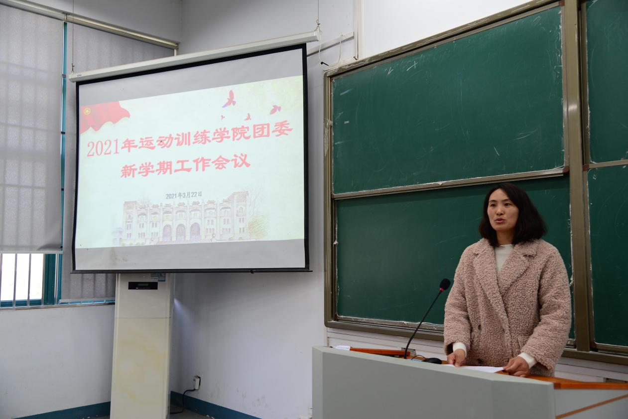 3月22日中午,运动训练学院团委于仙林校区教学楼218教室召开2021年新学期工作会议。运动训练学院党总支副书记喻菊,运动训练学院团委副书记吴海艳,运动训练学院学生会指导老师、辅导员刘宸以及学院全体团干部、学生会干部参加会议。会议由吴海艳主持。