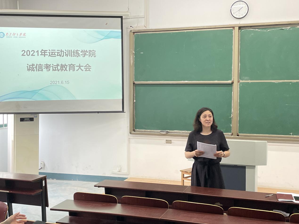 6月15日中午,运动训练学院在仙林校区教学楼218教室召开2021年诚信考试教育大会。本次会议内容主要通报了本学期学生违纪处分情况、宿舍安全检查状况、早查课状况,并就本学期期末考试诚信教育工作进行了布置安排。本次会议由运动训练学院党总支副书记喻菊主持,全体辅导员、班主任参加了本次会议。