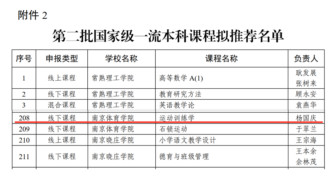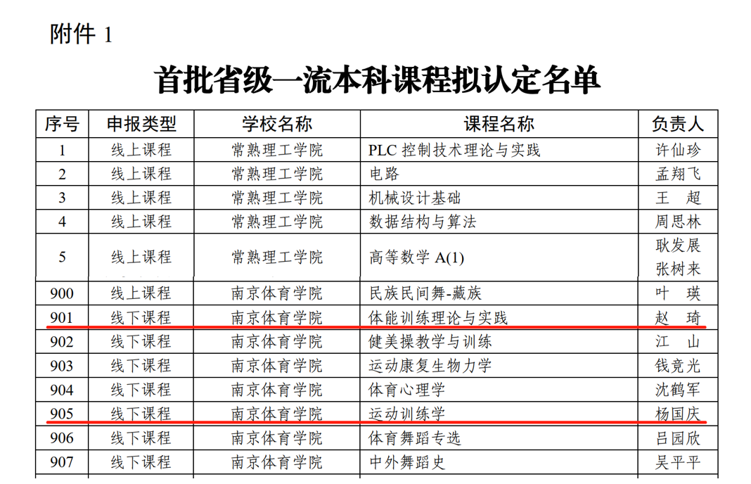 近日,省教育厅公示了首批省级一流本科课程拟认定和第二批国家级一流本科课程拟推荐的课程名单,运动训练学院《体能训练理论与实践》和《运动训练学》2门课程被拟认定为首批省级一流本科课程(线下课程),其中《运动训练学》拟推荐国家级一流本科课程。