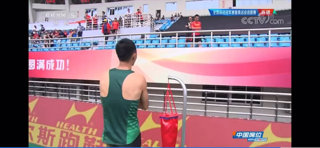 图6 东京奥运选拔赛王国杰比赛现场指导运动员王嘉男画面