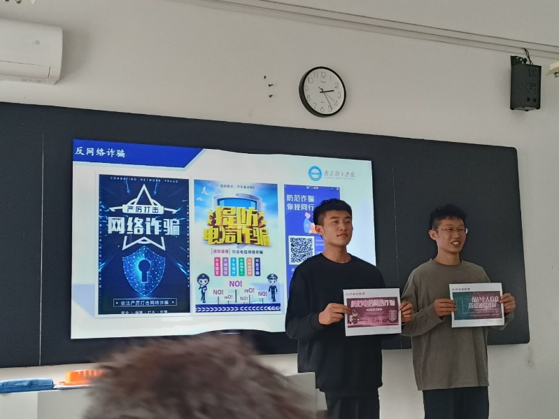 新学期初始阶段,南京地区校园网络诈骗案件频发,为保证学生利益,避免学生受到伤害。王老师以发生在身边的真实案例警示大家,要提高安全意识,保护个人信息,提防网络诈骗。生活委员王冬伟、宣传委员沙驰凯,通过手抄画的形式,进一步向全班同学宣传国家反诈中心APP。