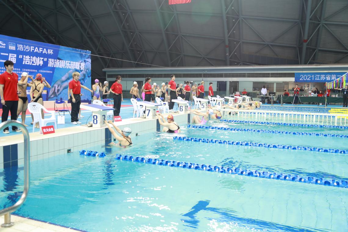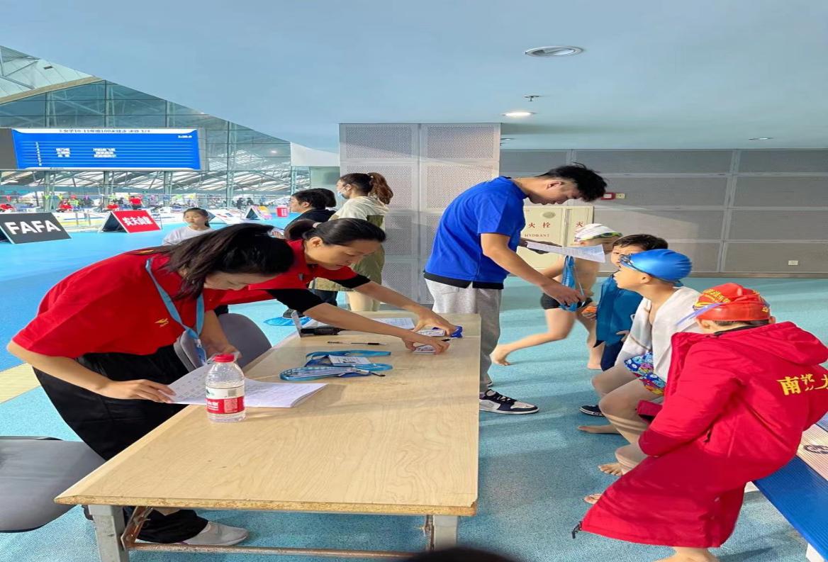 2021年10月23日,由江苏省游泳协会、江苏省体育总会主办的江苏省第二届城市游泳俱乐部联赛在南京市奥体中心游泳馆正式开幕。PA视讯运动训练学院游泳专项15名学生和田径专项13名志愿者受江苏省游泳协会邀请,在游泳专项教师陆青的带领下参与了本次游泳比赛的裁判和志愿服务工作。