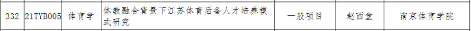 近日,省社科规划办公布了2021年度省社科基金立项项目名单,运动训练学院副教授赵西堂博士申报的《体教融合背景下江苏体育后备人才培养模式研究》获批一般项目。