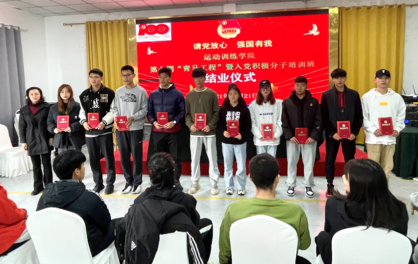 11月21日下午,运动训练学院第七期“青年马克思主义者培养工程”暨学生入党积极分子培训班(下称青马班)结业仪式在舟渔寨实践活动基地举行。运动训练学院党总支书记张亚军、副书记喻菊及培训班全体学员参加结业仪式。结业仪式由运动训练学院团委副书记吴海艳主持。