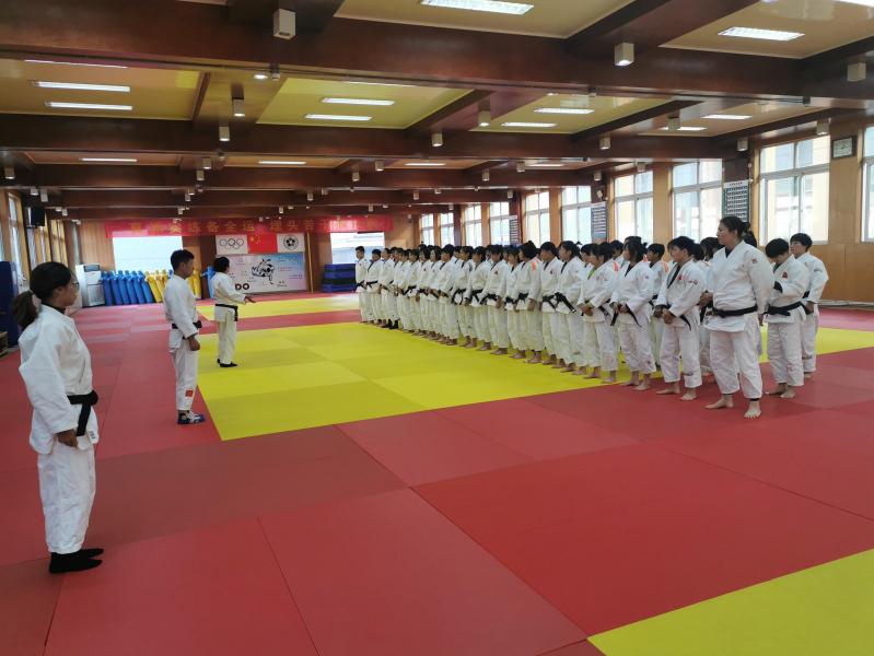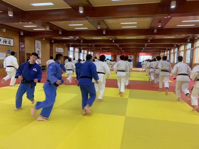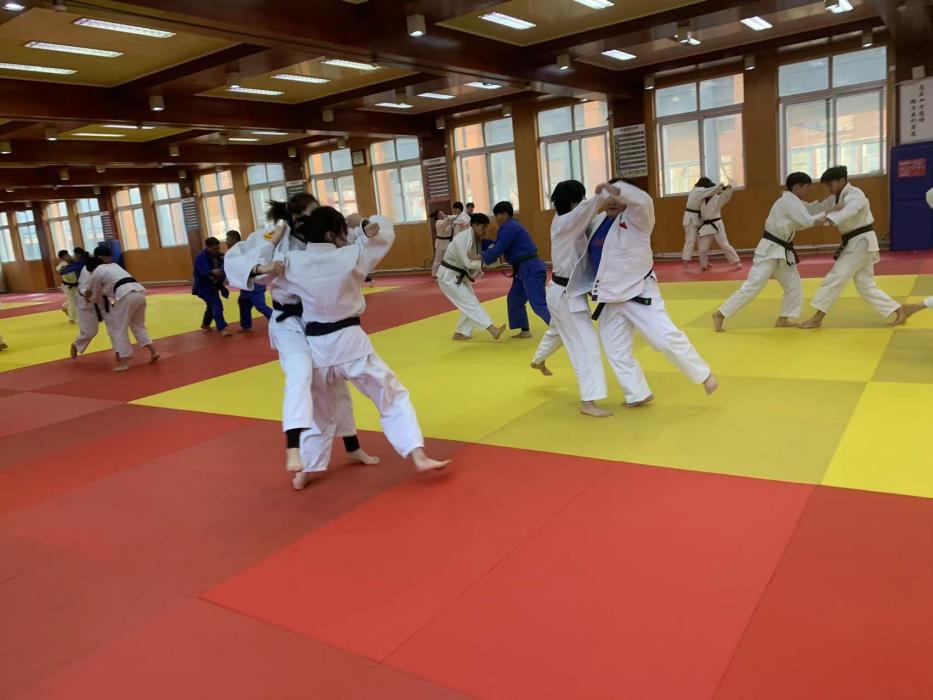 老师同学们的到来受到江苏省柔道队王娟教练及省队运动员的热烈欢迎,简短的问候后随即进入了紧凑的训练之中。训练初始学生们先跟随省队队员有序的进行了热身活动,为接下来的训练提供良好的身体保障。热身活动结束后,学生们与省队队员进行了近2小时的专项技术动作和实战训练。