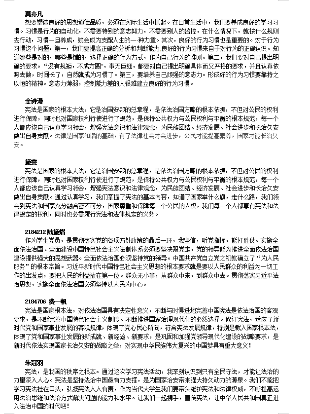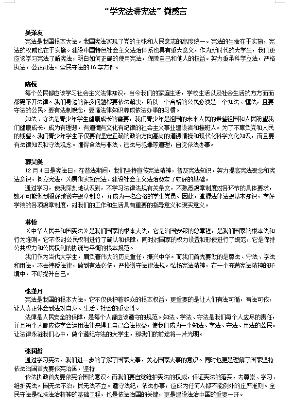 学生“学宪法讲宪法”微感言