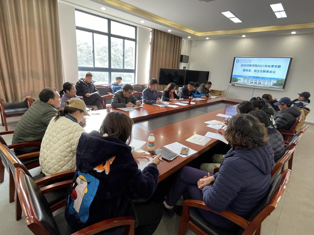 紧接着对《PA视讯集团入口班主任岗位职责》、《中共PA视讯集团入口委员会关于进一步加强辅导员队伍建设的实施意见》进行了解读;对《运动训练学院辅导员、班主任联席会议制度》(草稿)、学生请销假、考勤等制度进行研讨,与会老师就管理制度及办法执行等积极讨论并提出建议,并结合自身实际工作情况交流了工作经验和成效。