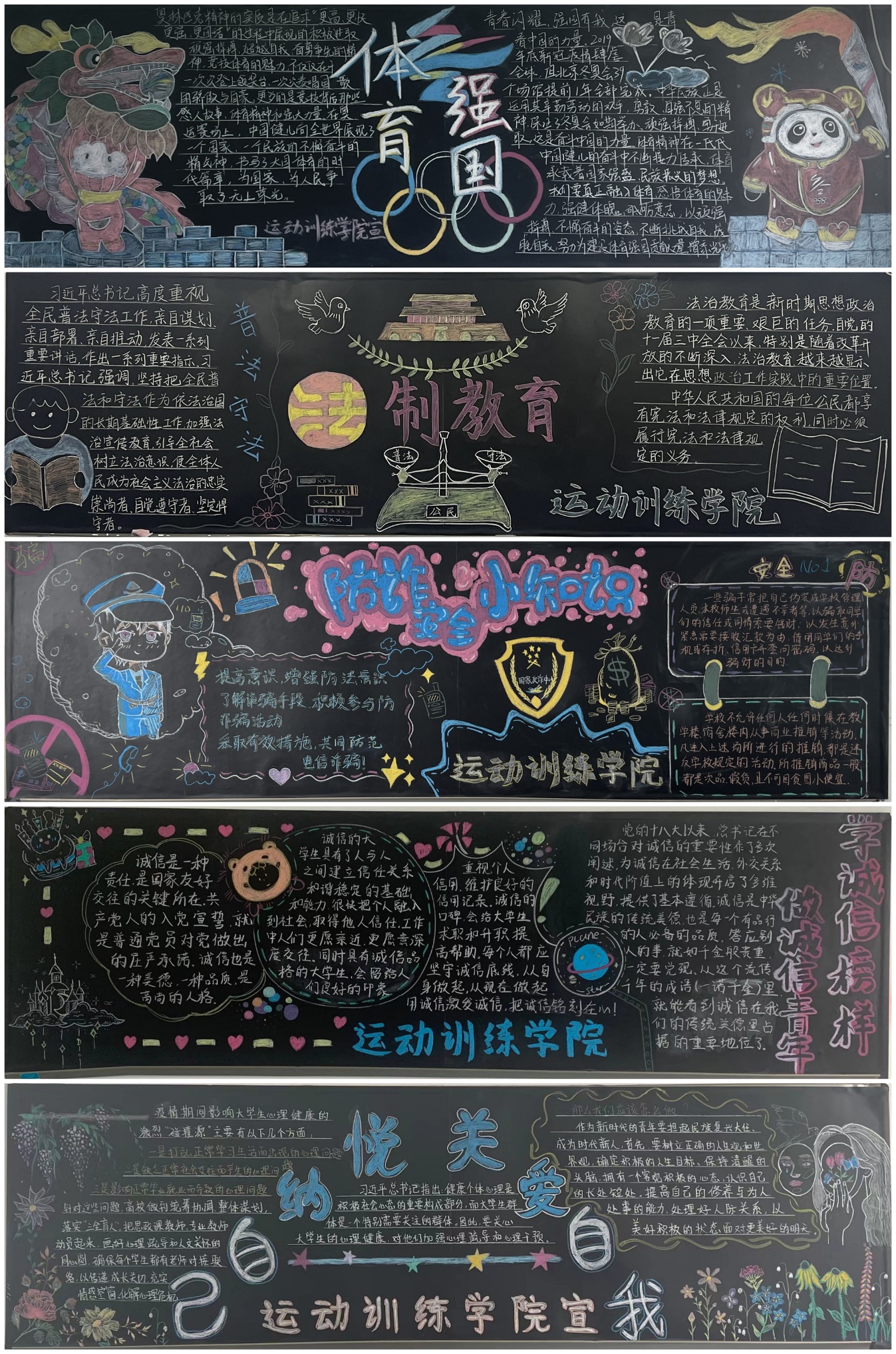 此次黑板报制定一个教室一个主题,各板报内容紧贴主题、创意新颖、内容丰富,分别以党的建设、建团100周年、体育精神、预防诈骗等主题,展现了学院青年的青春风采和积极向上的精神风貌。学院团委组织评委分别从内容、版面、文字、插图和创意五个方面对黑板报进行了评比,最终评出了一、二、三等奖。