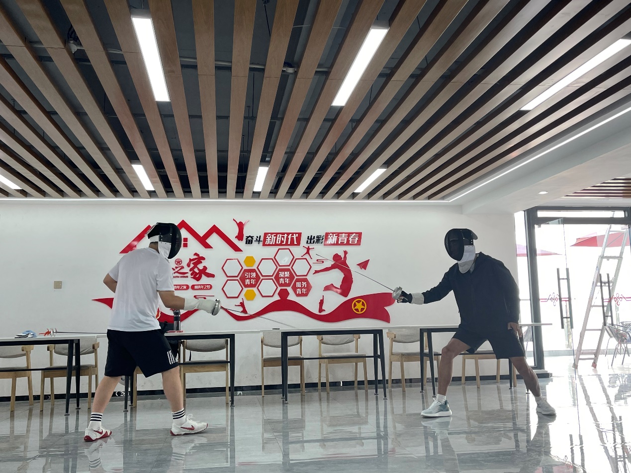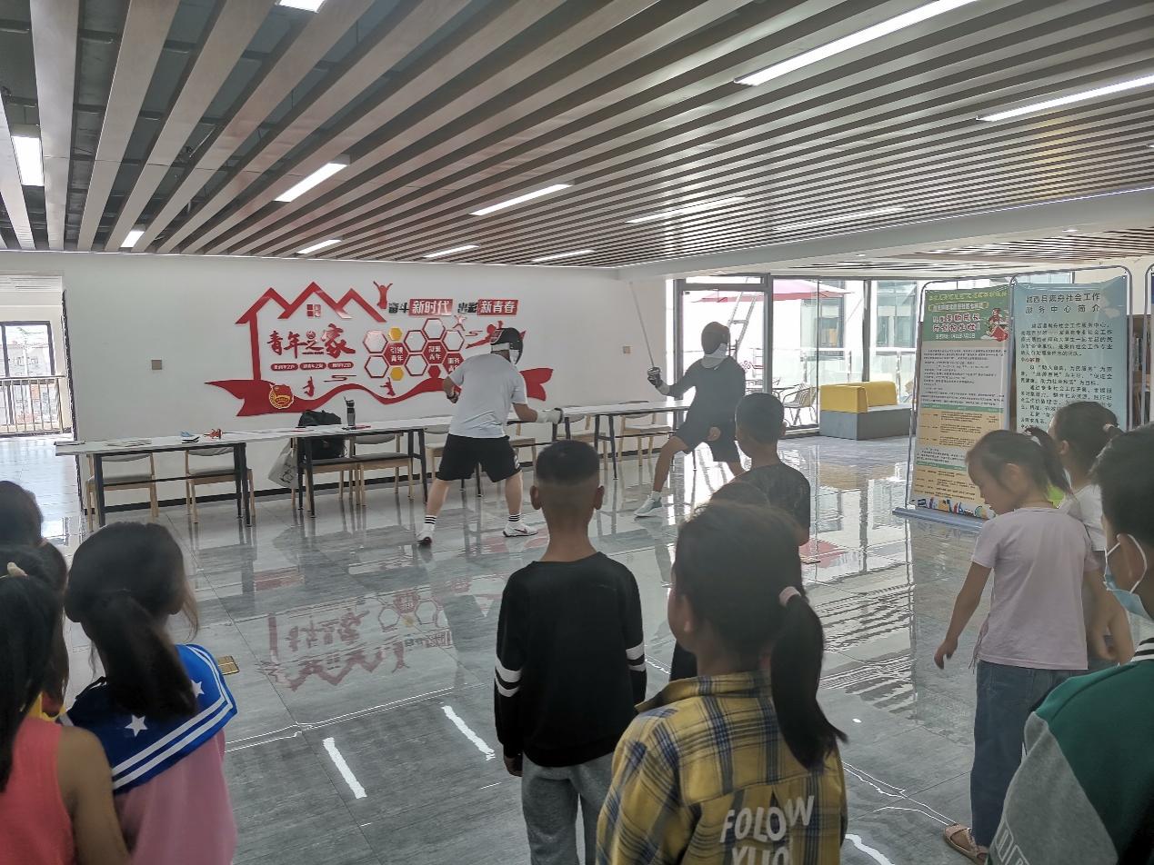 7月13日,实践团在感恩社区的党群服务中心进行了支教的招生活动。成员们先是用一段精彩的击剑表演获取了小朋友们的心。击剑运动可以锻炼反应能力,在搏击交手过程中,双方需要不断的观察,不断的思考,在进入交锋距离内、在有限的时间里,迅速做出反应,从而形成一种全新的思维模式,能够促进训练者的快速应变能力,尤其对青少年的头脑和智力以及身体的良好发育,都是一种非常有益的培养。