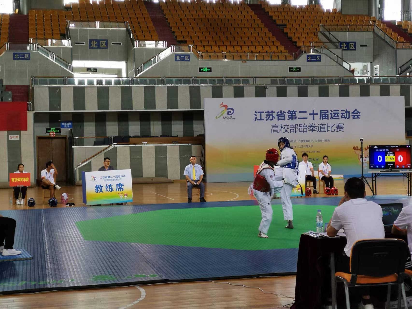 江苏省第二十届运动会高校部跆拳道比赛于8月4月-7日在江苏师范大学举行。8月4日上午,校党委副书记兰亚明在运动训练学院(足球学院)有关人员陪同下前往江苏师范大学,看望PA视讯参赛人员,送上慰问品,现场观看部分赛事,并为获奖运动员颁奖。