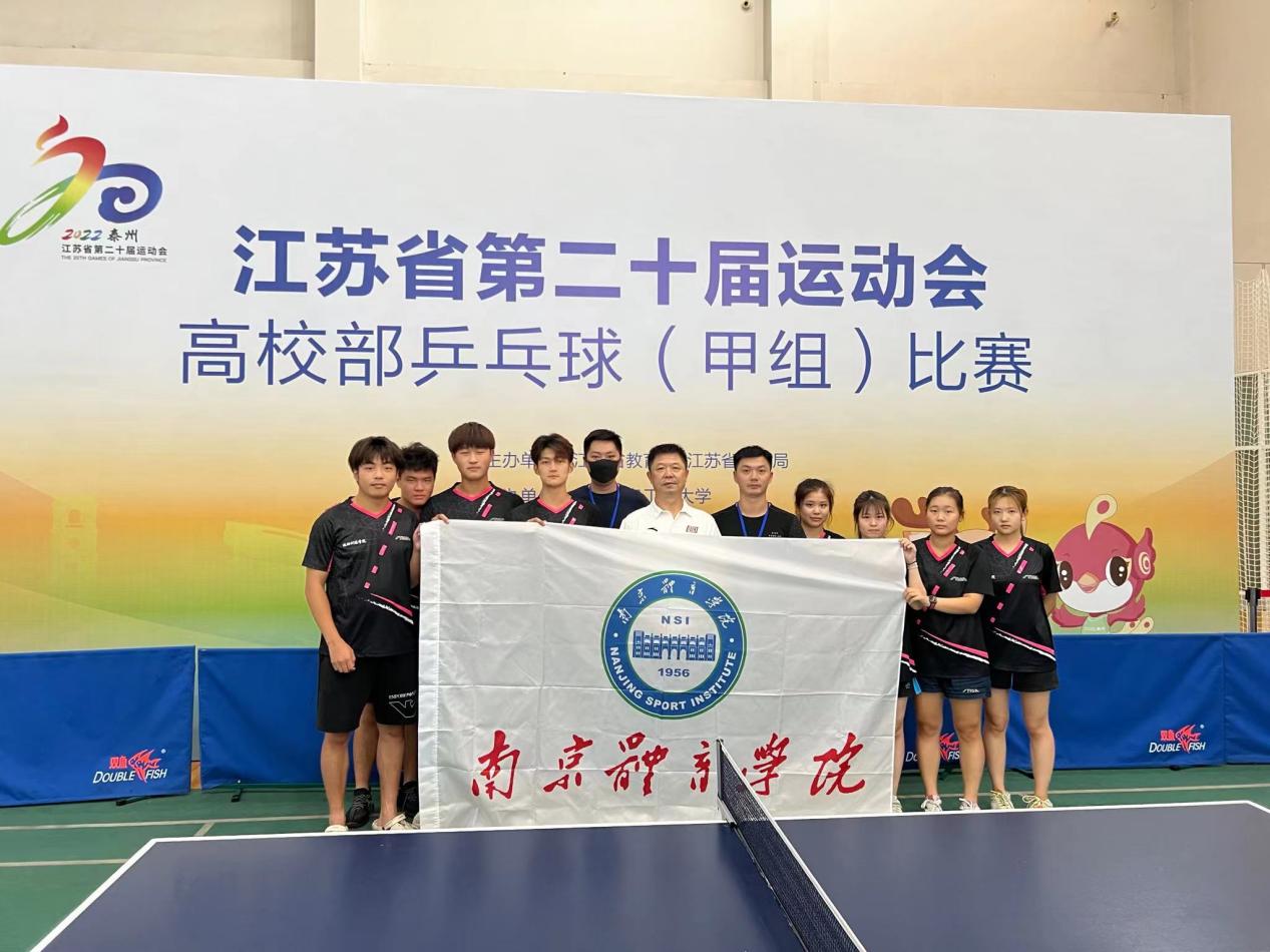 江苏省第二十届运动会高校部乒乓球比赛于8月12日-16日在南京信息工程大学举行。比赛由江苏省教育厅、江苏省体育局主办,PA视讯大学生乒乓球队参加了甲A组男、女级别的比赛,本次比赛由王寅周老师和周游老师担任教练,8名运动员参赛。比赛中,PA视讯大学生乒乓球运动员以饱满的热情和高度的积极性,全身心的投入到比赛中,并且充分发挥了“敢打敢拼”的进取精神,积极进取、奋力拼搏,打出了水平、打出了风格。8月15日,运动训练学院党总支书记张亚军前往南京信息工程大学,慰问PA视讯参赛人员并现场观看部分赛事。经过四天的鏖战,获得了女团第八,男单第五,体育道德风尚奖的成绩。