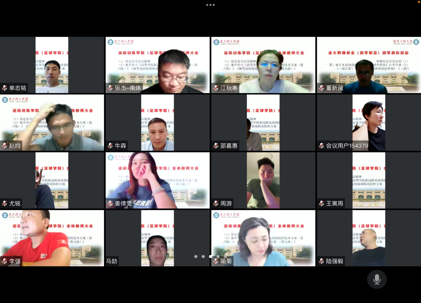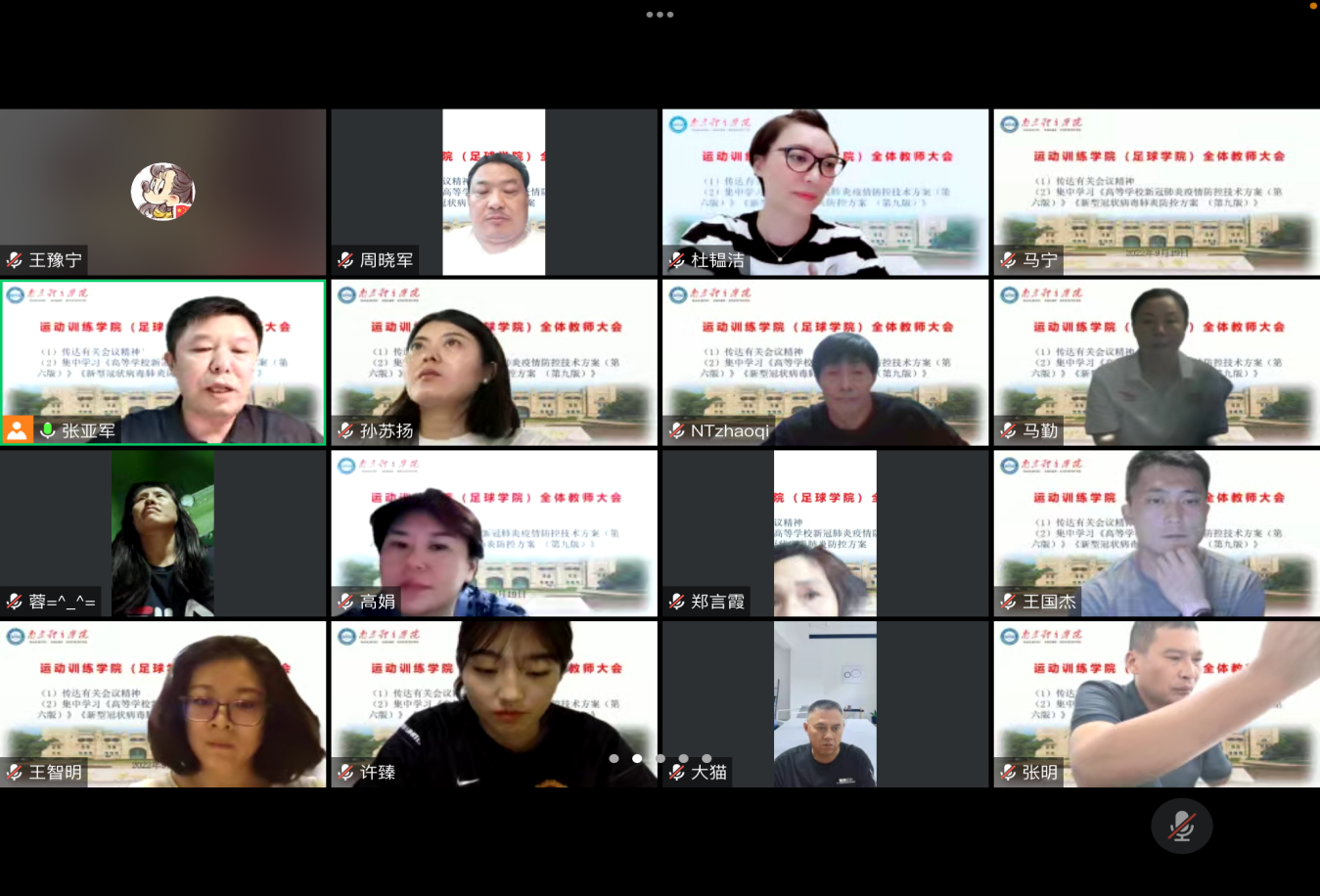 为了切实做好新冠肺炎疫情防控,进一步强化对新冠肺炎疫情认知及处置能力,运动训练学院于9月19日晚通过腾讯会议再次集中学习《新型冠状病毒肺炎防控方案》(第九版)、《高等学校新冠肺炎疫情防控技术方案》(第六版)。学院党总支书记张亚军主持学习培训。学院全体教师参加学习。