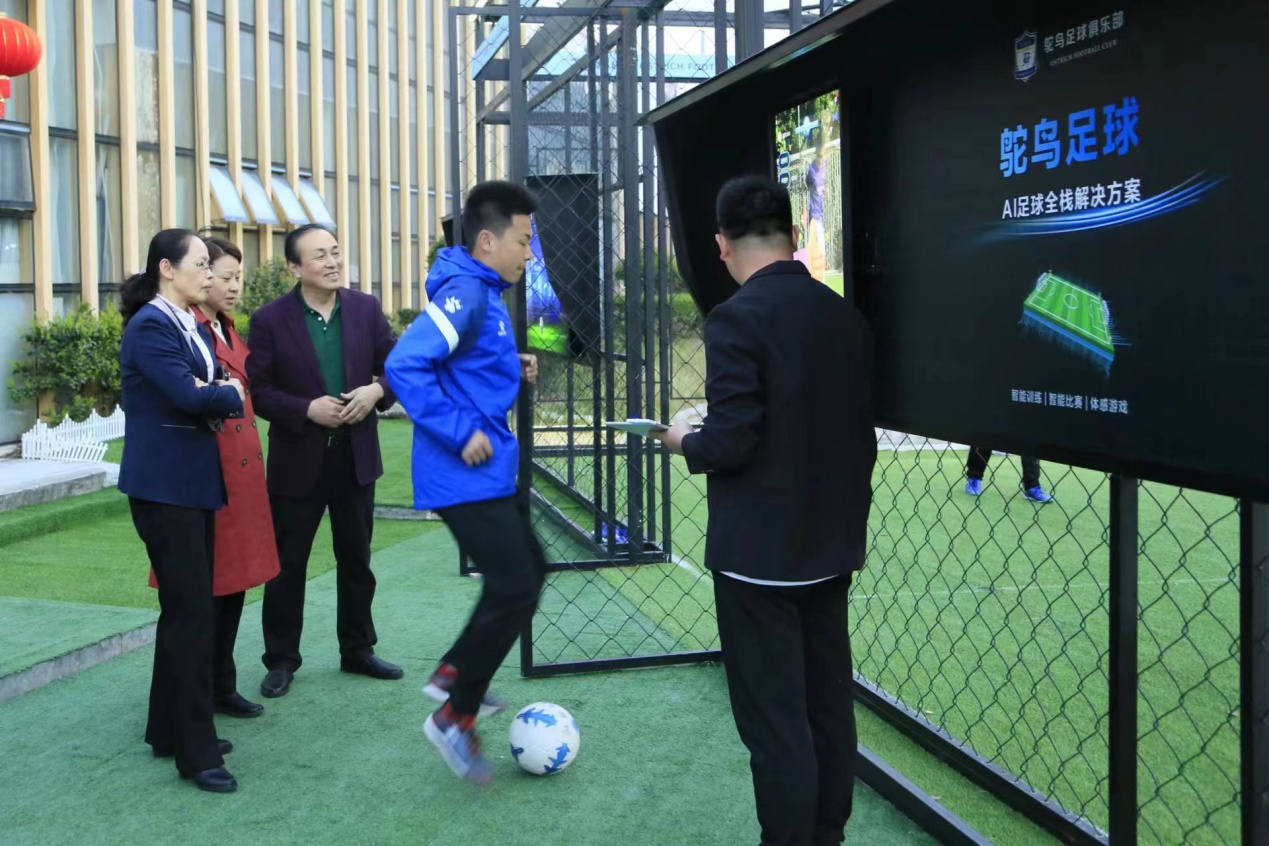 李江校长一行观摩鸵鸟足球“数字化”足球装备