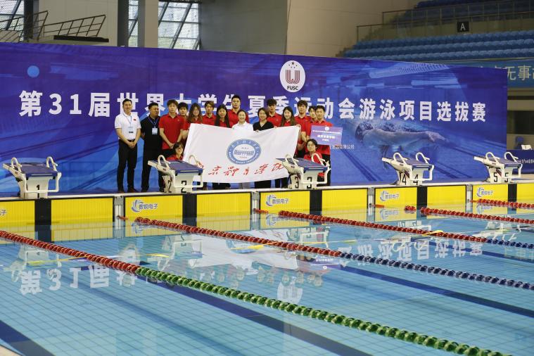 同时,江苏省学生体育协会也将本次比赛成绩作为全国第一届学生(青年)运动会游泳江苏省内选拔赛的重要依据,成绩优异的运动员将进入江苏省内大学生游泳队集训名单。本次运动训练学院与游泳学院联合组队,由12名大学生运动员代表PA视讯集团入口参加了第 31 届世界大学生夏季运动会游泳项目选拔赛并取得好成绩。赛前游泳学院院长王伟新、运动训练学院党总支书记葛见珠、省游泳队领队孙世昆给参赛运动员做了赛前动员,鼓舞士气,激励运动员们以最佳的状态参加比赛。比赛中在教练员陆青老师悉心指导下,运动员们竭尽全力,奋勇争先,顽强拼搏、积极进取,全队共取得了1个第一、2个第二、1个第三名的好成绩;运动员陈可意勇夺女子200米混合泳项目的金牌并获得了参加第31届世界大学生运动会的参赛资格,将于今年7月代表中国参赛;运动员王约翔,张哲维,陈可意,王逸轩,戴佳怡入选全国第一届学生运动会江苏省大学生游泳队的集训名单,将代表江苏参加全国大学生运动会。