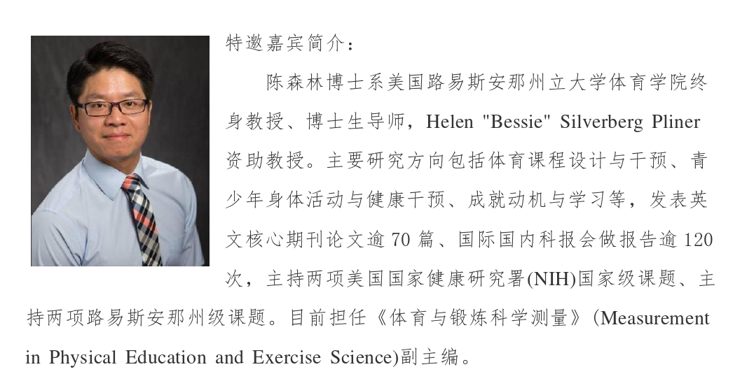 为了拓宽国际视野,增进学术交流,6月12日下午,特邀美国路易斯安那州立大学终身教授、博士生导师陈森林博士走进我院2023年第3期学术沙龙,为我院师生作主题为“体能训练的理论基础与实际应用”学术讲座。学术沙龙由运动训练学院(足球学院)院长赵琦主持,体能训练、训练理论中心教师及体能训练专业学生参加了本次活动。
