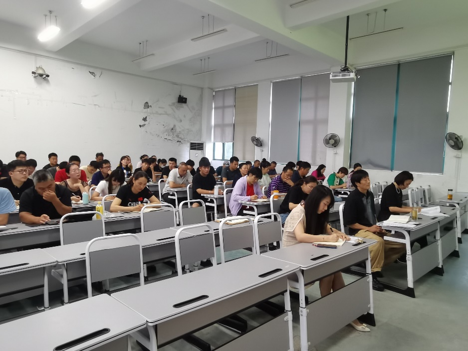 张明对学期末及暑期各项教学工作进行部署。要求全体教师务必注意时间节点,根据教务处通知要求认真完成监考、阅卷、成绩录入等教学任务;同时,要求各位老师在假期中要注重各项课题、教学比赛的材料准备;根据培养方案的修订情况,利用暑期开展教学大纲的修订工作。