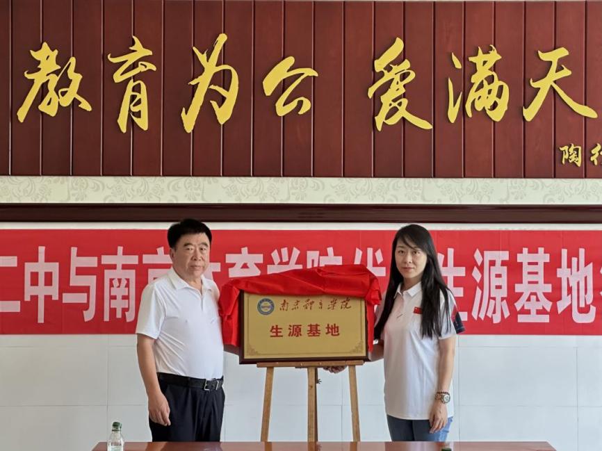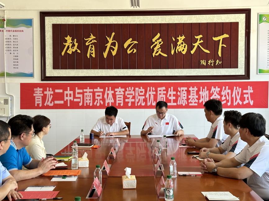 校党委学生工作部、学生工作处副处长郁东与青龙第二高级中学党支部书记张瑞峰签订生源基地建设合作协议