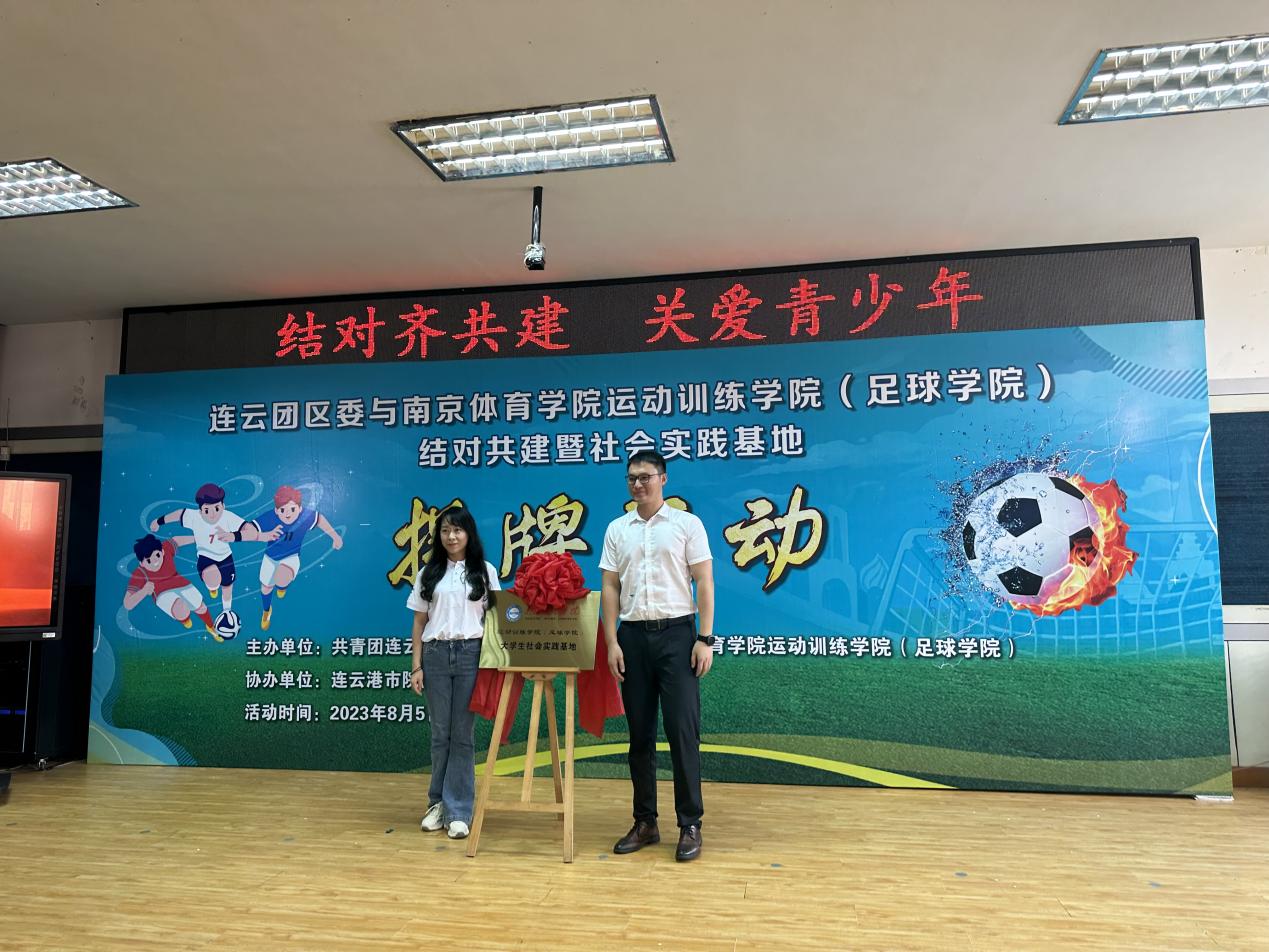 团连云区委书记、区少工委主任钟栩玮与学院党总支副书记杨蓉为社会实践基地揭牌