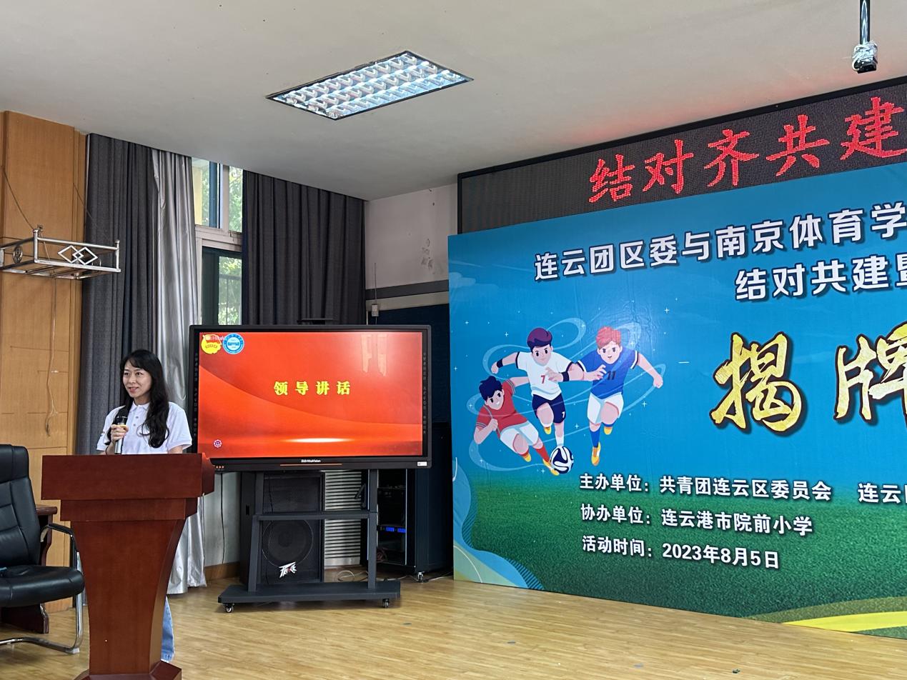 在深入学习贯彻习近平新时代中国特色社会主义思想和党的二十大精神,推动落实团的十九大精神之际,为引领广大青年学生在社会实践中厚植爱国情怀、了解国情民情、增长知识才干、激发挺膺担当,用自身所学知识主动服务党和人民,在磨砺锻炼中塑造意志品格,为投身强国伟业贡献南体力量。85日,运动训练学院(足球学院)“体”国情发展,“育”乡村新颜志愿服务队前往江苏省连云港市连云区组织开展为期一周的暑期“三下乡”社会实践活动。本次活动联合省少工委、连云港市少工委等部门共同举办。当日,实践团队在连云港市院前小学以“结对齐共建,关爱青少年”为主题举办2023年暑期“三下乡”社会实践启动仪式。江苏省少先队总辅导员助理聂德勇,连云港市少先队总辅导员李娜,连云区教育工委委员、区少工委主任张克林,团连云区委书记、区少工委主任钟栩玮,院前小学党总支书记王新军,运动训练学院(足球学院)党总支副书记杨蓉,运动训练学院(足球学院)辅导员、实践团队带队教师刘宸以及连云港市院前小学师生代表共100余人参加活动。启动仪式由连云港市院前小学校长徐寿鹏进行主持。