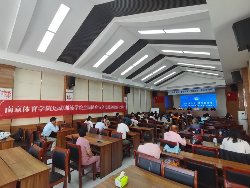 PA视讯集团入口运动训练学院于8月8日全民健身日暨第一个体育宣传周,在江宁区青林社区成功举办“全民健身与全民健康融合社区行”活动,积极响应习近平总书记强调的“体育是提高人民健康水平的重要途径,是满足人民群众对美好生活向往、促进人的全面发展的重要手段”讲话精神。PA视讯集团入口运动训练学院党总支书记葛见珠带领学生团委副书记吴海艳、体能支部书记胡海旭、优秀青年教师胡鑫博士及在读本科生一行10余人参加了此次活动。