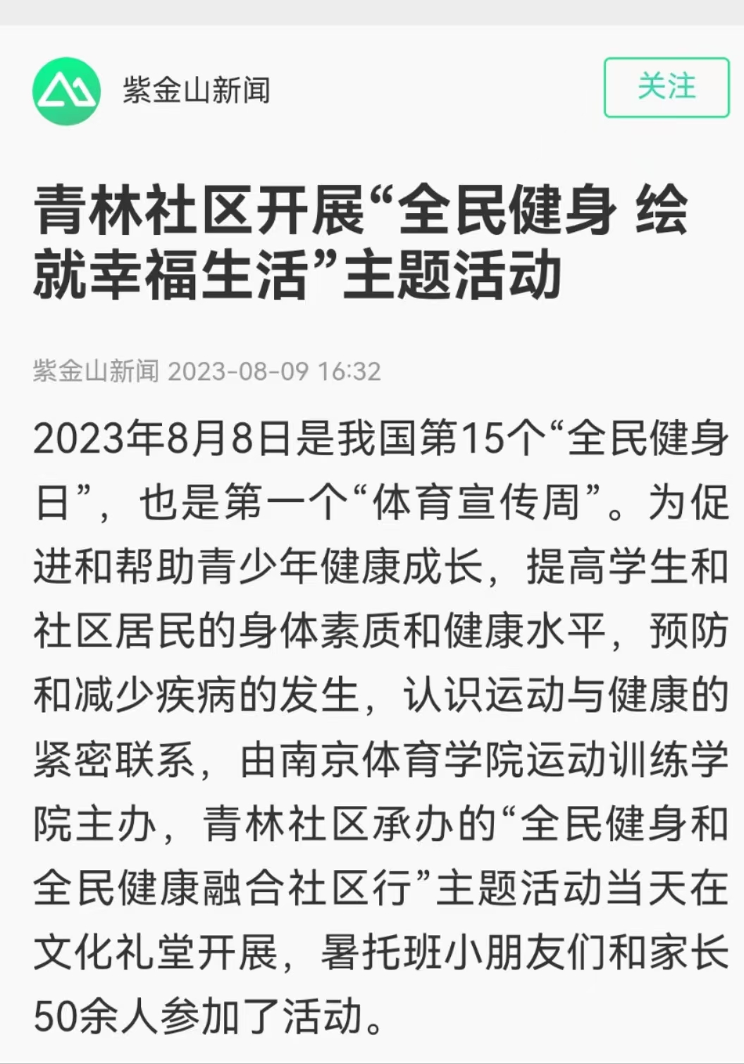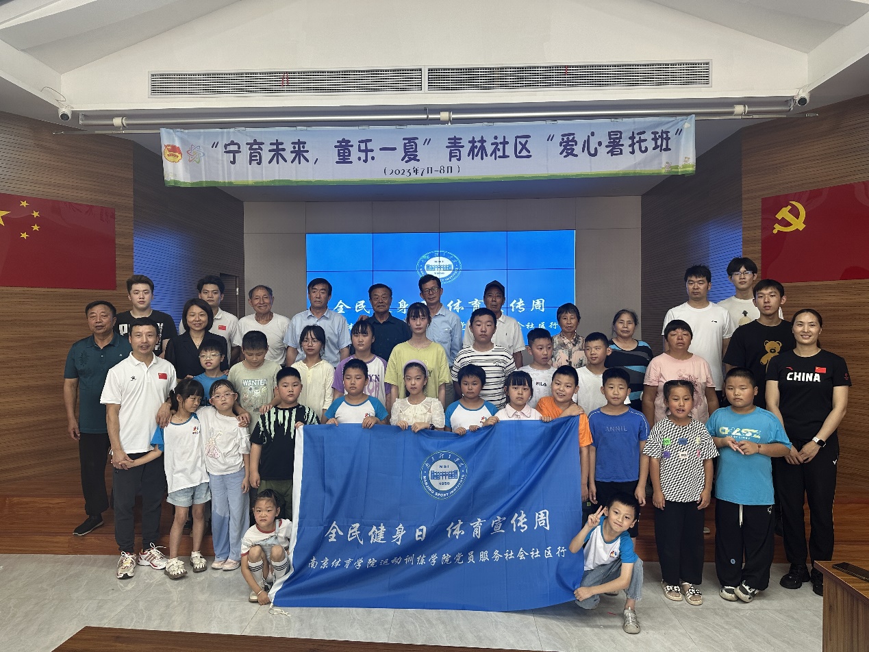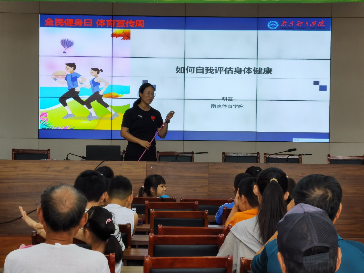 8月8日全民健身日当天,学院师生走进江宁青林社会党群活动中心开展“全民健身与全民健康融合社区行”活动,旨在充分发挥体育的功能,提高社区居民的健康意识,推广科学的运动和健康知识,同时展示学院的专业实力和社会责任感。活动包含健身讲座与健身活动两大板块。由学院运动训练研究专家主讲关于“全民健身与全民健康融合”的科普知识讲座,内容包括运动时的姿势评估,日常生活中的健康饮食与正确运动方法等,为社区居民及学生普及健康生活方式,培养其自觉锻炼、主动健身的好习惯,倡导“每个人是自己健康第一责任人”的理念。讲座之后,师生带领社区居民进行运动技术指导、体育游戏互动等多种形式的运动体验,对运动中由于动作不规范而出现的一系列运动损伤提出有效预防措施。指导社区群众进行心率、身体三围、BMI等多项基础身体健康自测方法,提升群众对健康评估的认知,提倡树立新时代美德健康生活方式,满足群众多元化体育健身需求。