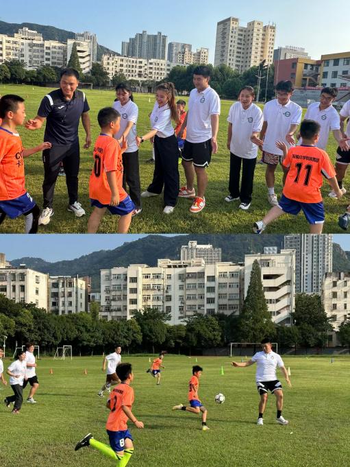第二站,实践团队在连云港市院前小学开展足球文化宣讲与教学实践活动。活动中,国家足球一级运动员、国家足球D级裁判员、志愿服务队主要成员杨政首先为连云港市院前小学全体足球队队员讲解了关于足球运动的历史文化、我国校园足球发展现状,并结合自身课堂学习情况分享了PA视讯国际级裁判员马宁老师执法卡塔尔世界杯、亚冠决赛的“高光时刻”。希望足球队队员们在内心埋下“热爱”、“坚持”与“梦想”的种子,未来在足球的世界里茁壮成长,为投身体育强国建设奉献新时代青少年的汗水与智慧。志愿服务队全体队员认真带领足球队孩子们进行活动前热身,并细致讲解了足球赛的现行规则、基本运球技能以及预防受伤的注意事项。本次活动是结对共建社会实践基地后的积极尝试,更是高校践行服务社会职能的有益举措。今后,学院将以获批国家级一流本科专业为基点,进一步发挥运动训练专业的优势,以互融共促打造校地共建新模式,以同频共振构建校地共建新格局,为谱写结对共建融合发展、校园足球助力体育强国建设新篇章贡献南体力量。
