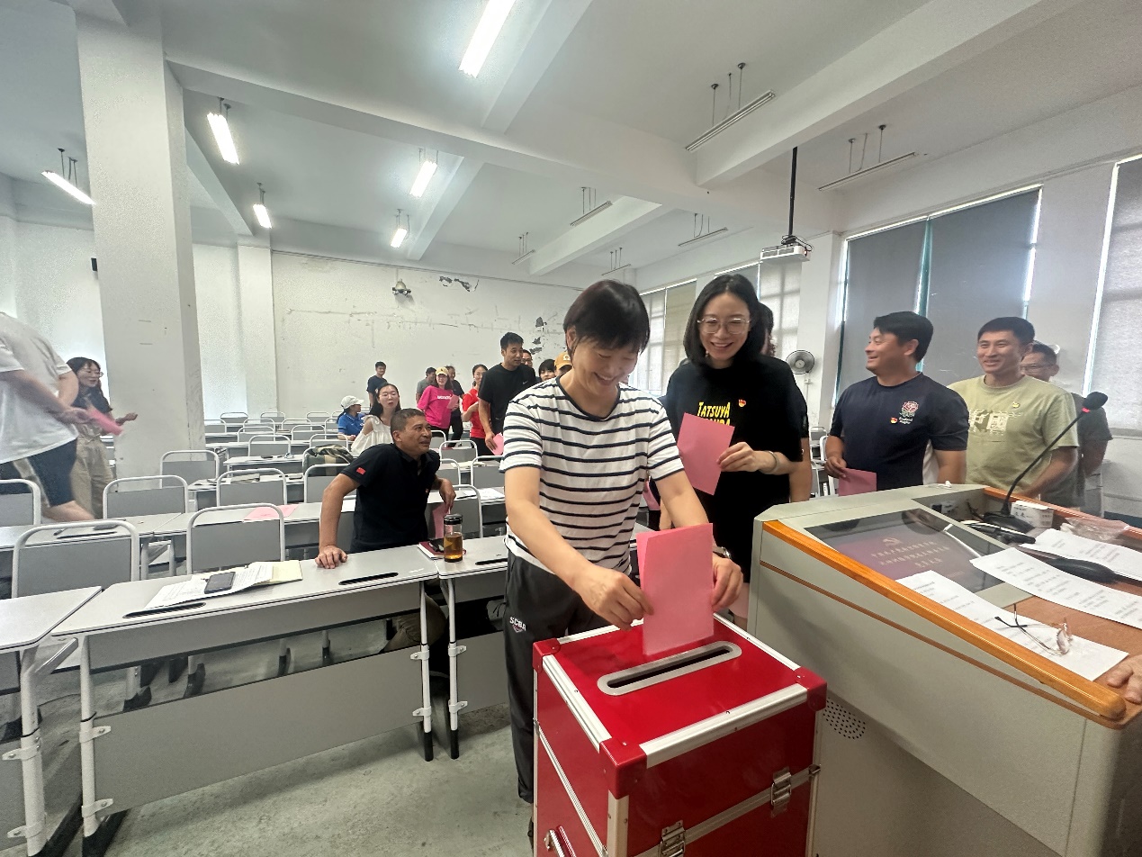 此次会议先后通过了《中共PA视讯集团入口第九次代表大会运动训练学院党总支选举办法》、代表候选人预备人选名单和总监票人、监票人、计票人名单。采用无记名投票方式差额选举产生8名党代会代表。