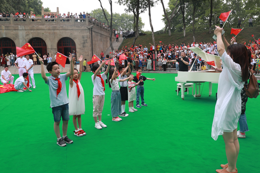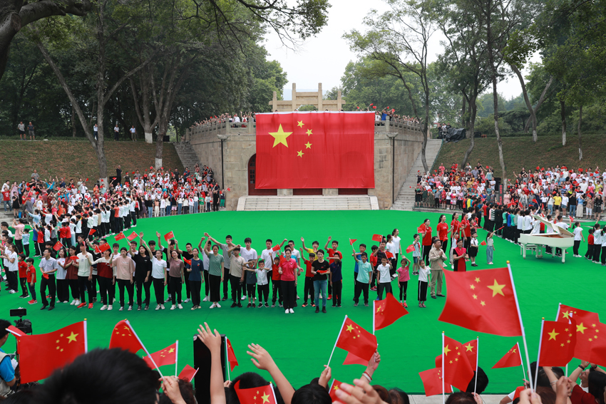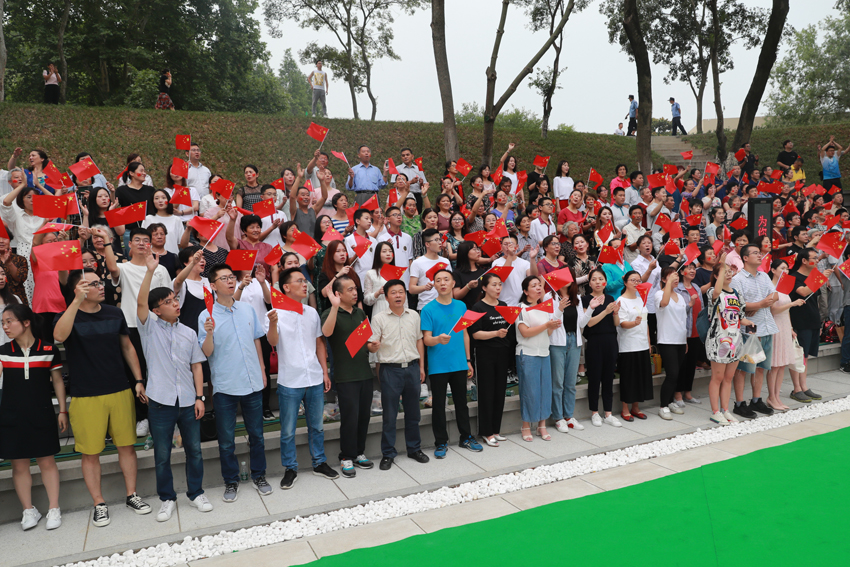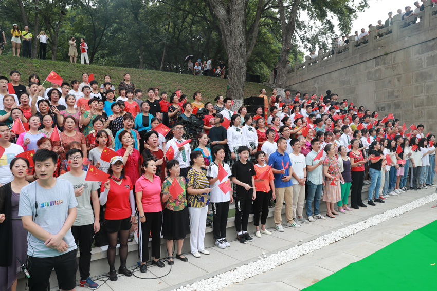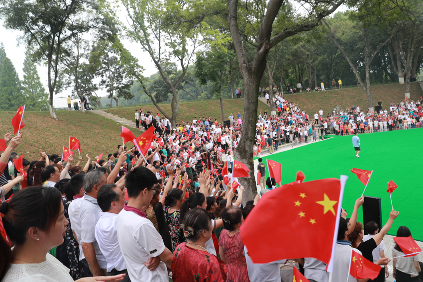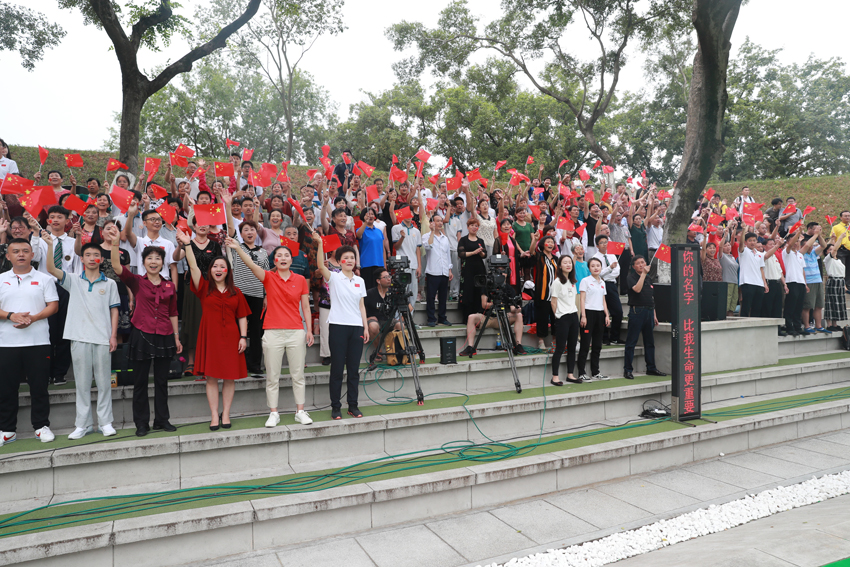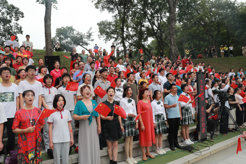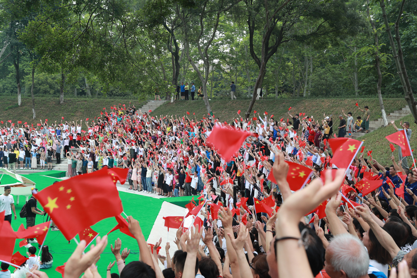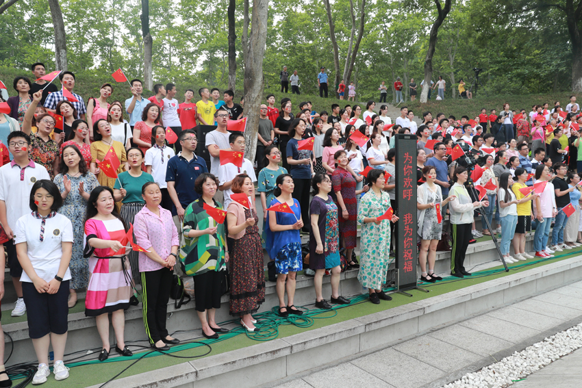 7月6日上午,PA视讯集团入口校园内红旗招展,千人攒动。来自江苏各行各业的2000多名优秀代表齐聚南体校园,放声高歌,礼赞祖国。大家合唱的歌曲是《红旗飘飘》。