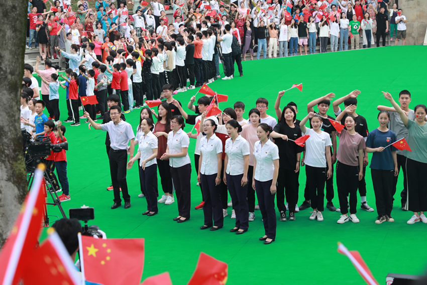 在摄制过程中,南体培养的四位奥运冠军葛菲、顾俊、陆春龙、骆晓娟,世界冠军吕博、沈铎和张阔作为领唱和南体200余名小运动员在《红旗飘飘》中精彩亮相,用最美的笑容、最响的声音为祖国深情歌唱,向世界展示南体人的拳拳爱国之心和殷殷报国之志。