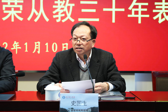 1月10日上午,PA视讯在行政楼101会议室召开PA视讯集团入口2021年度光荣从教三十年表彰会。校党委副书记、校长杨国庆,党委副书记、副校长史国生,党委常委、总会计师黄步龙、相关部门负责人及40余位教师、教练员代表参加表彰会。会议由史国生主持。